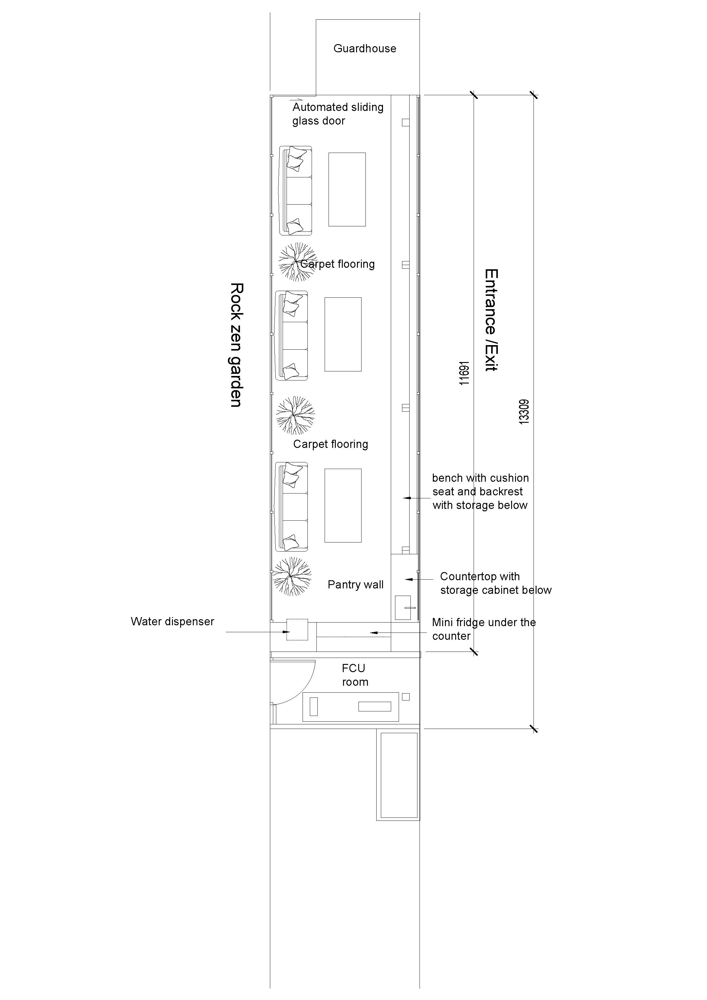 apply carpet flooring to all interior floor areas add realistic landscape treatment around the exterior perimeter of the plan colour all sofas tables and loose furniture items in white keep the overall rendering clean and consistent with the existing linework