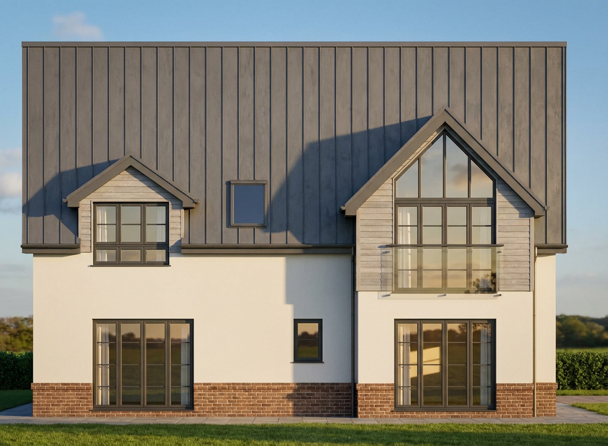 convert this floor plan into a realistic isometric 3d view of a full house show the space from an elevated angle with furniture walls and details visible grey stone at bottom with rough wood siding use the same furniture as shows on the plan do not change the orientation of the floorplan