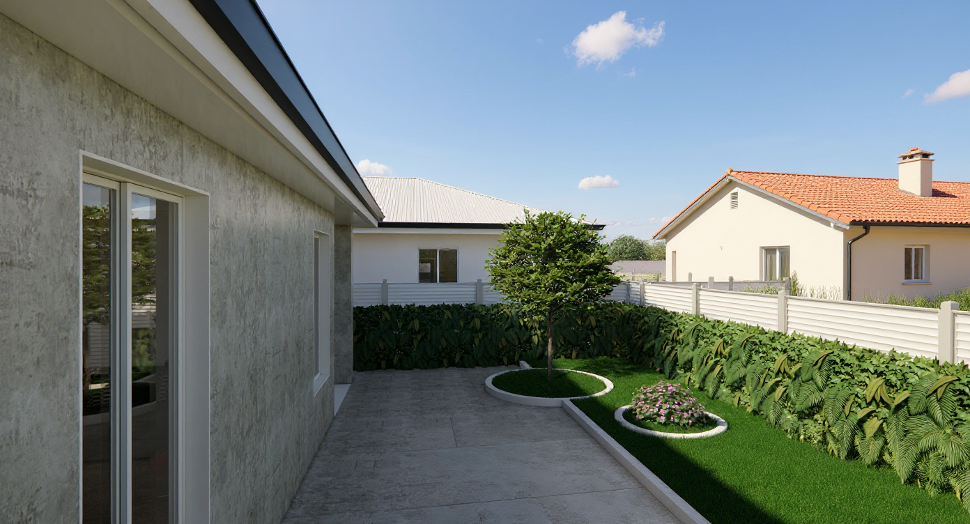 change the window frame from white to black and add some outdoor seating furniture