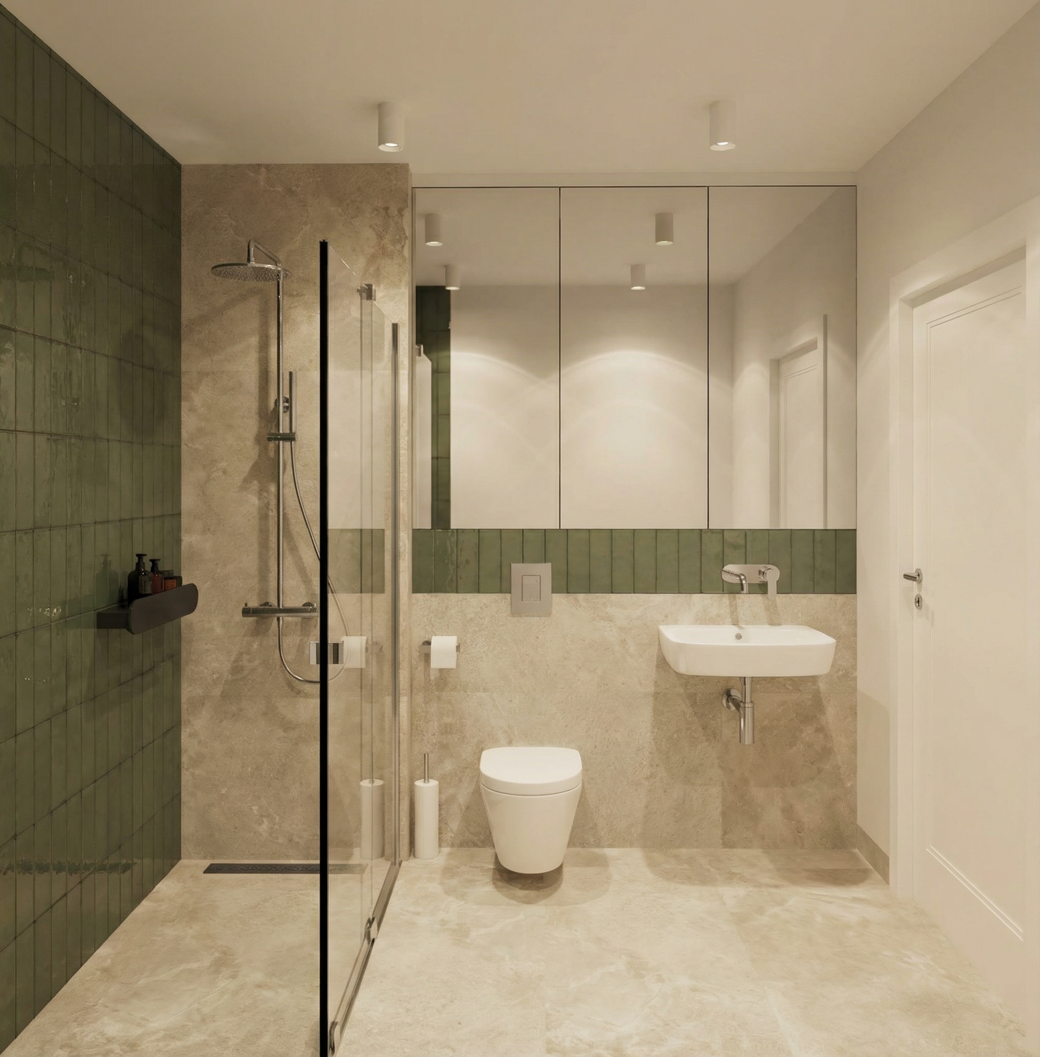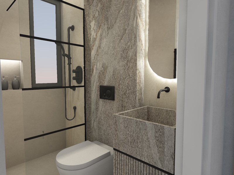 all the walls are tiles 60x120 the tile where the toilet is is the same with the sink s tile
