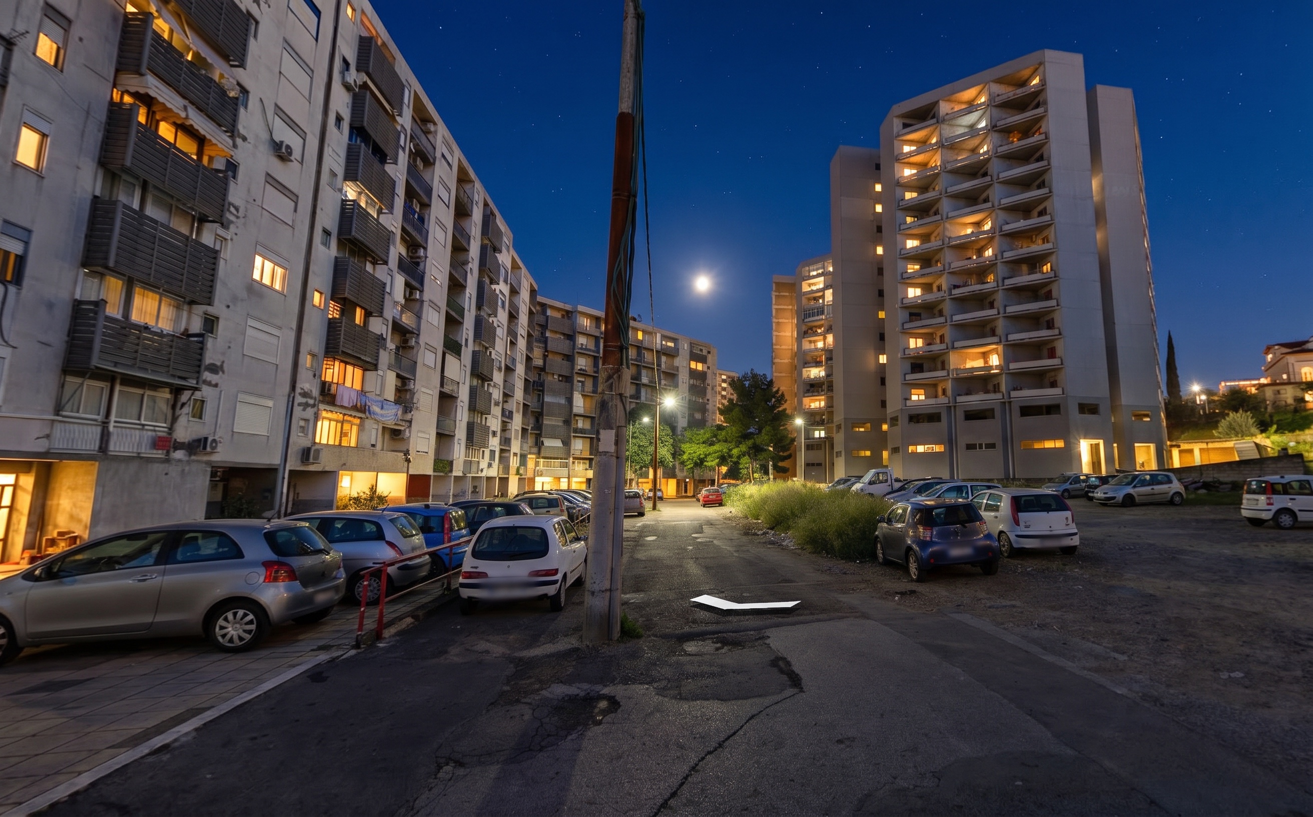 inseriscimi solo sul lato destro dell immagine una recinzione di cantiere provvisoria nuova con faresti illuminato e l0 immagine della facciata ristrutturata del palazzo del lato sinistro inserisci persone che passeggiano sulla strada inserisci nell immagine dei pannelli in pvc una versione migliorata del palazzo del lato destro asfaltami la strada dell immagine l immagine va benissimo inserisci nella parte alta della recinzione del cantiere una fascia di luce e una gru che supera il palazzo sul lato destro senza coprire l immagine del palazzo per far capire che in lavorazione dietro la recinzione di cantiere inserisci la gru sul lato destro inserisci un impalcatura sempre con sistemi di illuminazione e sposta la gru sul lato destro del palazzo elimina gru