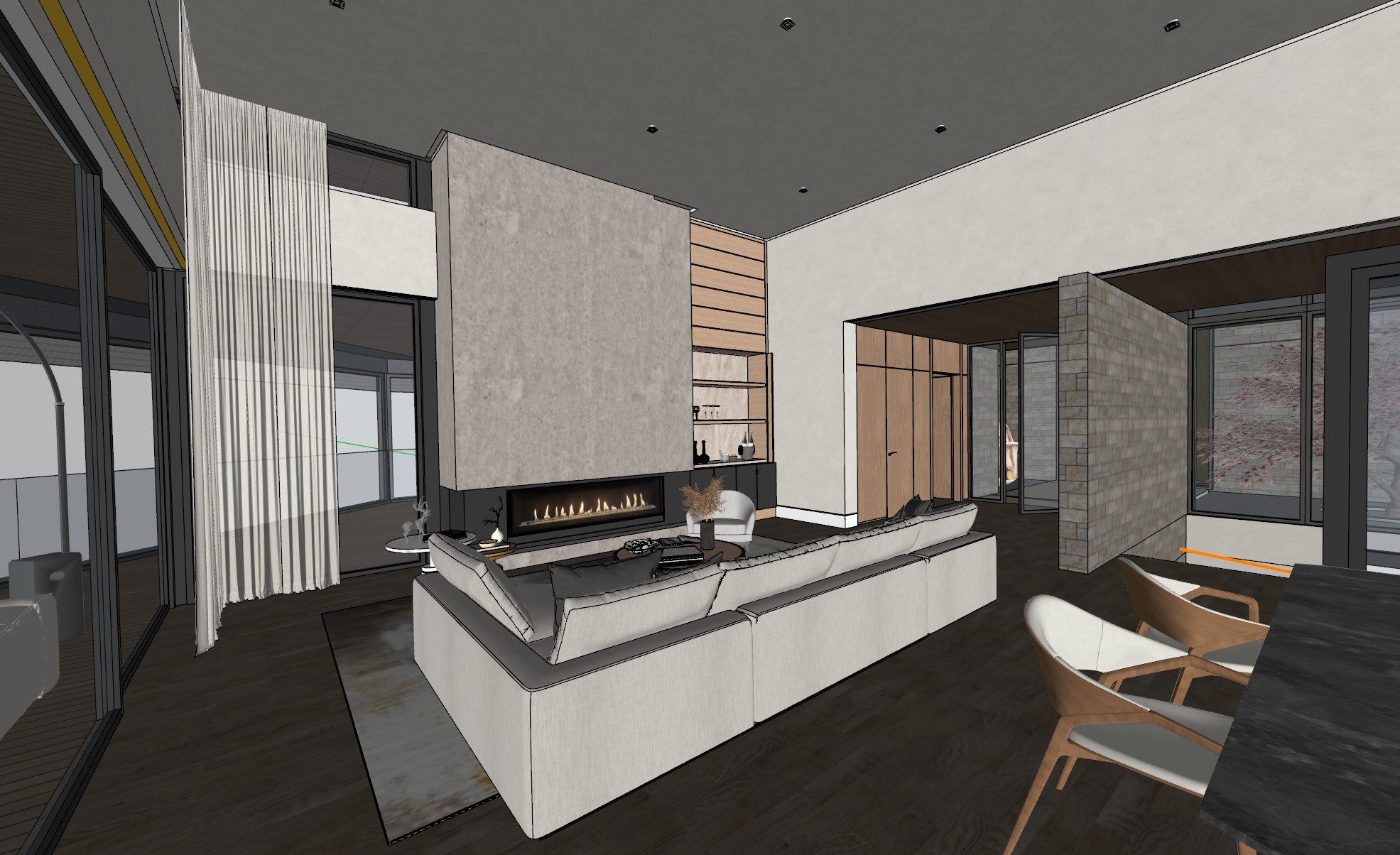 make living room look realistic trees view behind the porch