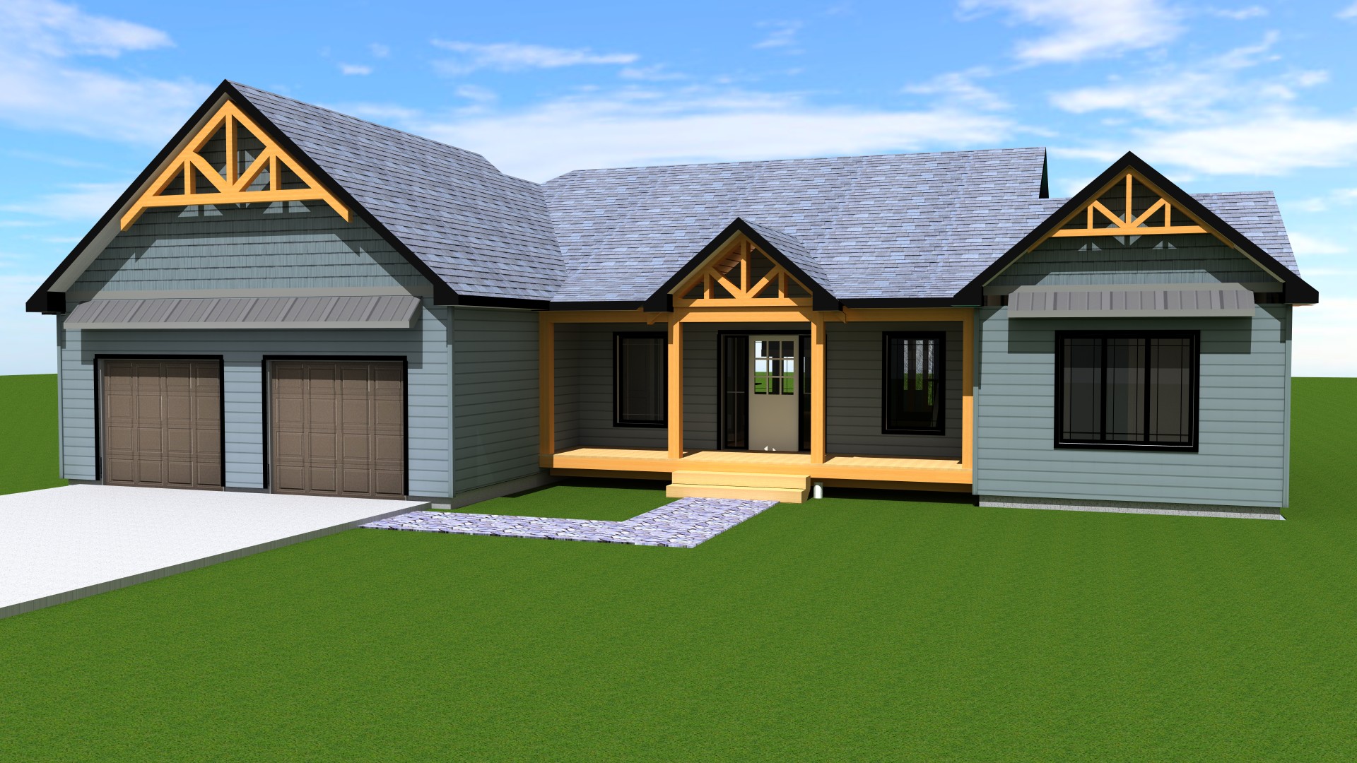 black roofing shingles black fascia dark charcoal siding black trim around doors and windows trees in back flower beds in the front of house