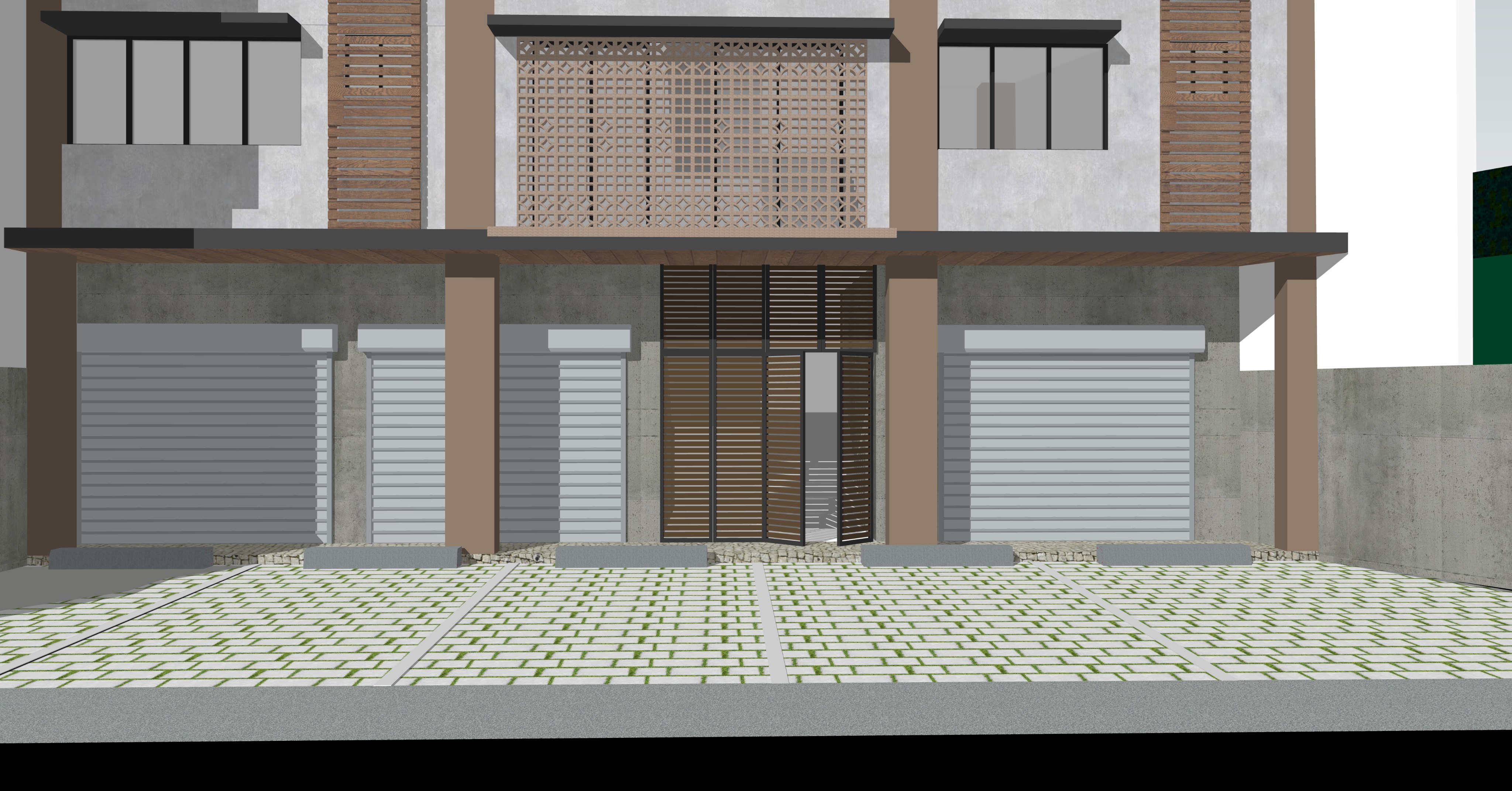 retain the building design as is overall mood mid level mixed use philippine building balanced composition slight street life but not crowded realistic daylight shadows natural tropical warmth grounded everyday atmosphere not high end stylized dramatic cinematic over designed upper floors 2nd 4th residential units preserve facade exactly add subtle realism light curtains soft window reflections minor interior shadows slight lived in touches no geometry changes no facade reinterpretation main middle building ground floor commercial units at ground level no signage bands no large storefront signboards no added facade features interior visibility requirement ground floor interiors must appear clearly and warmly lit modest and realistic not high end include visible interiors through glass small local parlor interior only salon chairs mirrors simple wall lighting modest finishes small local caf interior only small tables and chairs simple counter warm lighting casual neighborhood aesthetic exterior signage must be minimal small or implied only no signage bands vehicles park vehicles only within the 5 designated parking slots no side parking no additional street parking vehicle type mid level philippine vehicles common sedans small suvs mpvs no luxury vehicles no high end brands vehicles must feel realistic and appropriate to a modest urban setting