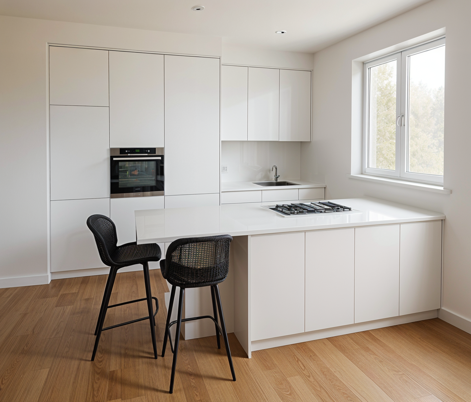 flawless dull oak flooring wall and ceiling white painted cabinets fundermax 0071 fresko ap countertop dekton marina silver coast counter left in oak