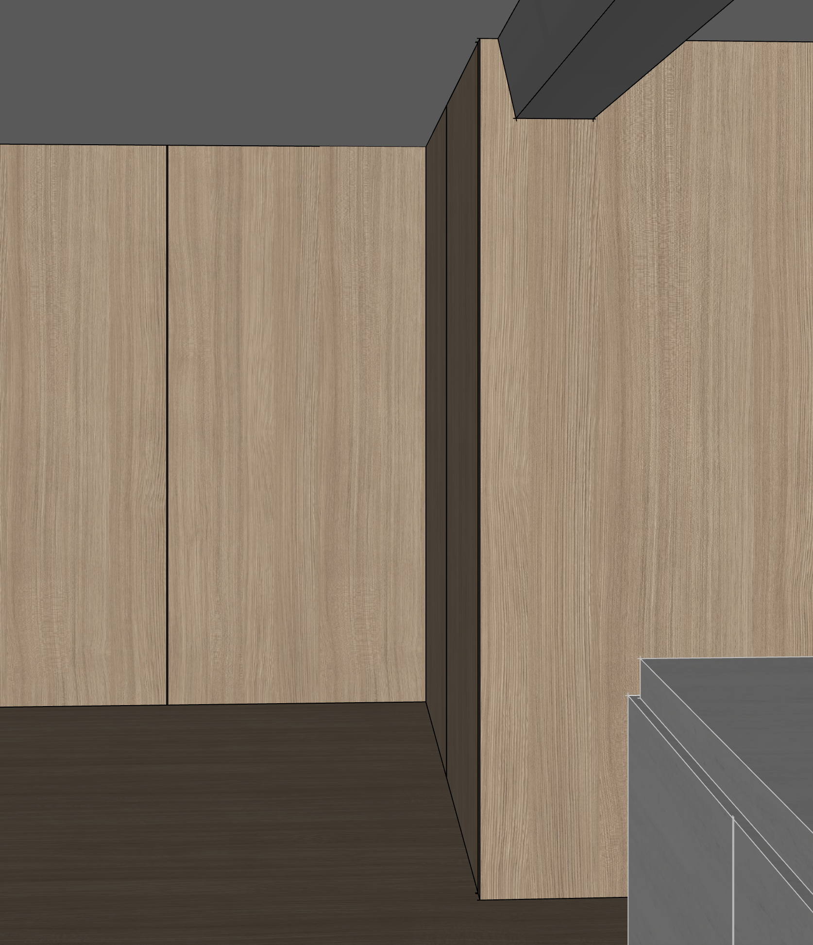geen spots in het plafond hout op de vloer en de muren moet hetzelfde zijn olm fineer