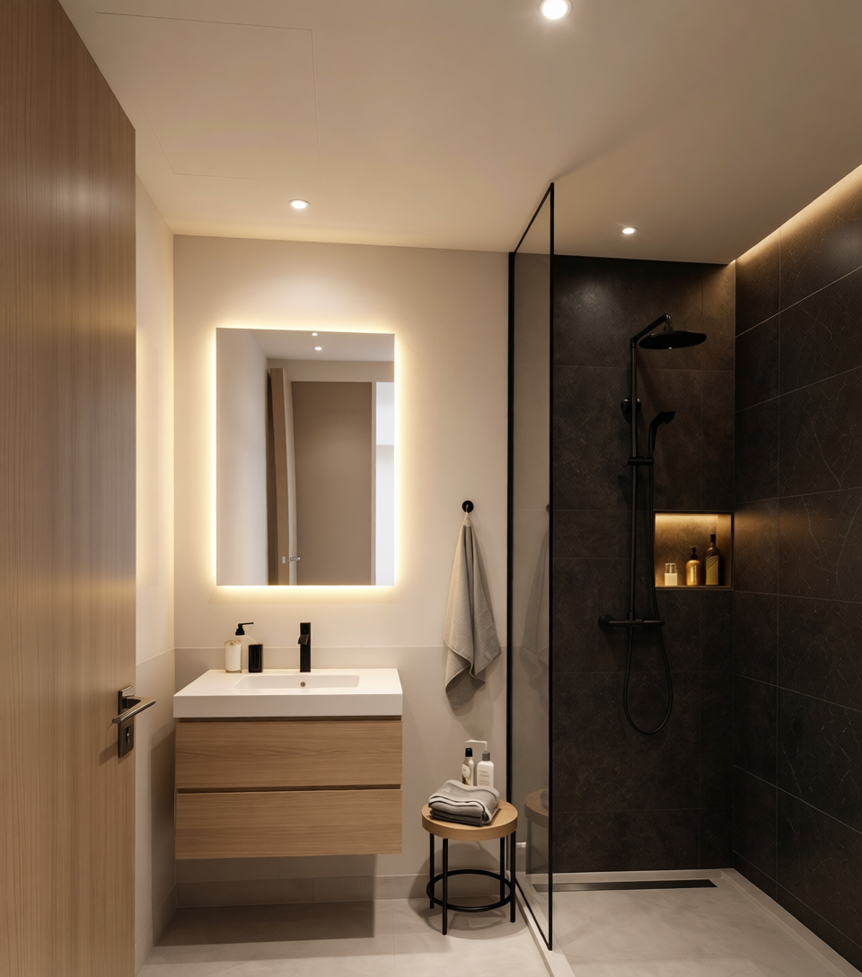 change the floor to white marble not the shower area the rest the same