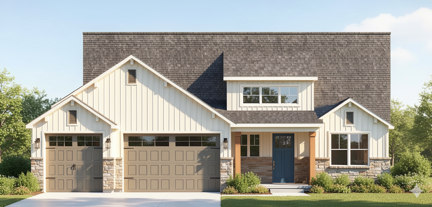 create a soft loft atmosphere the wall is dark green ral6005 the parquet is oak colored with striped offset tiles add a nice texture to it the sofa is blue in front of it is a thin structured beige carpet the armchair is a terracotta colored comfortable winged armchair there are green flowers behind the armchair the armchair has a black and white pillow to the left behind the armchair the shelves are walnut colored with books vases and small statues on the shelf an led strip lights up under the long shelf brightening the picture tilted against the wall the curtains are dark blue through the windows we can see a big city opposite is the kitchen with a walnut colored gray brown marble countertop the bar stools are terracotta colored the picture has a soft bright cozy light show everything where it is in the picture