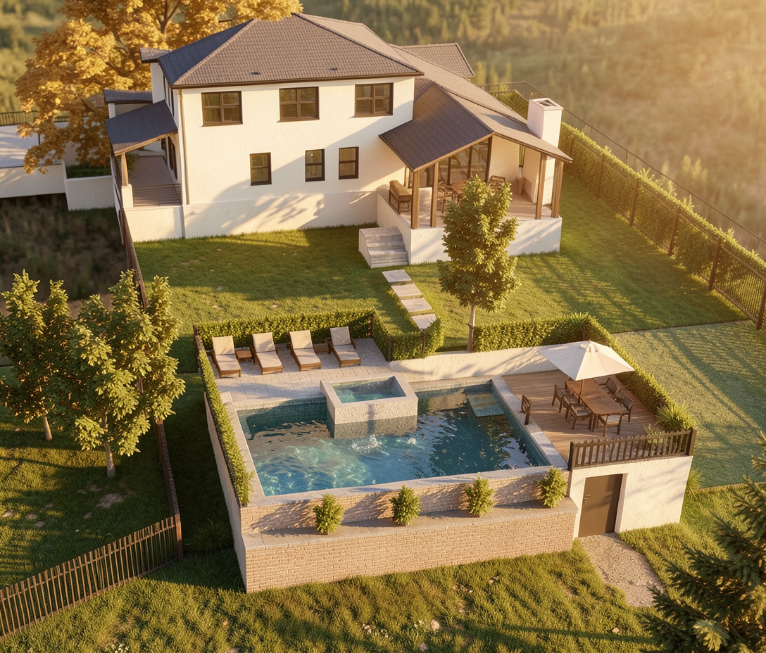 this is an interior view of a coffee shop add pendant lighting above the seating area and make the lighting feel like it s coming from large windows facing west in the afternoon in the winter in north america the ordering counter has tile on its facade and the furniture is oak and jade green powder coated metal
