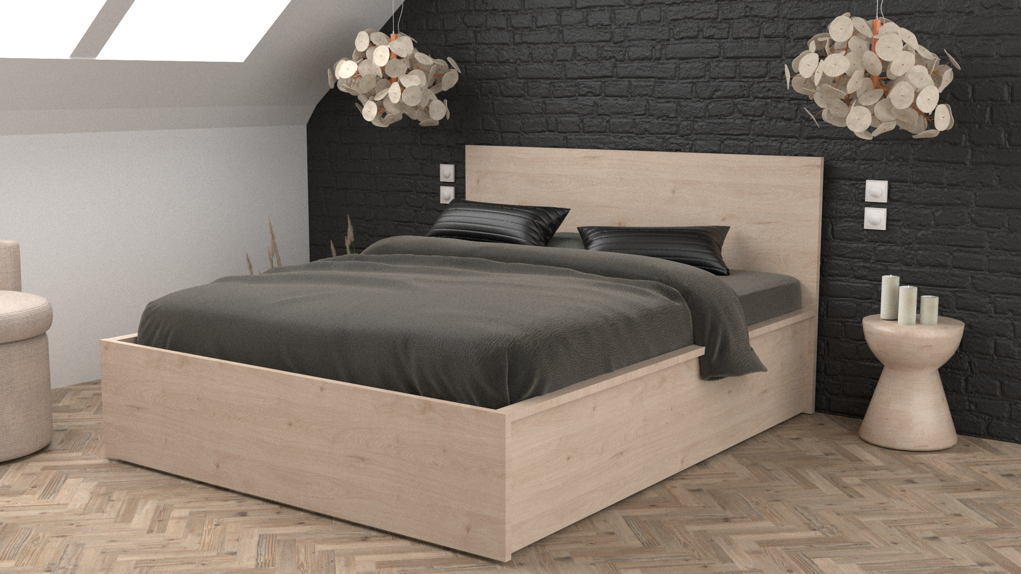 chambre coucher minimaliste et chaleureuse style japandi wabi sabi ambiance zen et l gante lit double centr literie en lin froiss aux tons beige repli s sous le matelas cru et cr me draps l g rement d faits plaid beige drap deux tables de chevet blanc sym triques design pur chacune d cor e d un vase minimaliste avec des fleurs s ch es aux teintes naturelles mur principal habill d un papier peint textur ton sable avec motifs organiques en lignes fines et ondul es voquant des paysages topographiques ou des montagnes abstraites sol en parquet en bois clair tapis doux et discret sous le lit lumi re naturelle douce entrant par le dessus par des velux en haut gauche clairage mural noir mat minimaliste sur le mur droit atmosph re calme luxueuse mais sobre espace harmonieux proportions r alistes textures tr s d taill es rendu photor aliste clairage global doux profondeur de champ l g re haute d finition style magazine de design int rieur prompt negatif ne change pas le d cor de meuble et sa forme