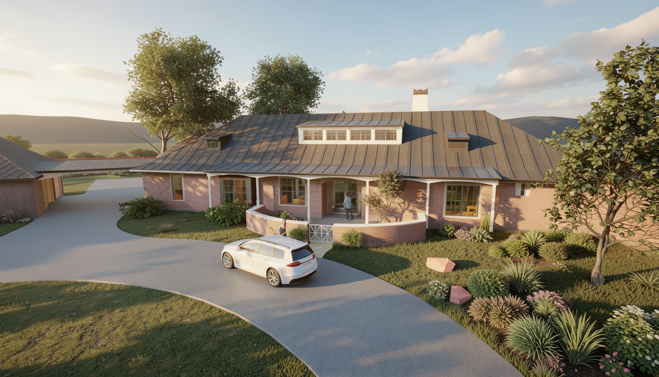 renovation and architectural completion of an existing building the current white building with a black upper extension serves as the starting point for a renewed architectural expression the overall volume and massing remain unchanged and the location and dimensions of all window and frame openings stay the same but the fa ade may be reinterpreted freely within these constraints develop a strong coherent fa ade concept that elevates the architectural quality identity and materiality of the building a distinct articulation between the lower and upper parts is encouraged but the exact manner of this division is open to interpretation through material transitions depth rhythm shadow lines or detailing contemporary high quality fa ade materials may be combined or contrasted such as brick concrete metal timber or refined mineral finishes with freedom in layering texture and detailing to create architectural depth and character the zinc material of the upper volume standing seam may be reintroduced in the lower fa ade specifically in the vertical elements between the window frames creating a subtle material dialogue and visual continuity between the two parts while maintaining their distinct identities the horizontal division between the two parts may be positioned slightly higher allowing the existing gutter line to run continuously around the building just above the existing white volume and to become an integrated architectural element the lower part is primarily finished in off white plaster while the upper volume is expressed in zinc standing seam cladding the yellow building in the background is outside the scope of the project and must remain fully unchanged high quality realistic architectural visualization daylight conditions neutral sky urban context clear material expression and a clean professional presentation make the top part of the building dark zinc maintain the vertical dark strokes with zinc