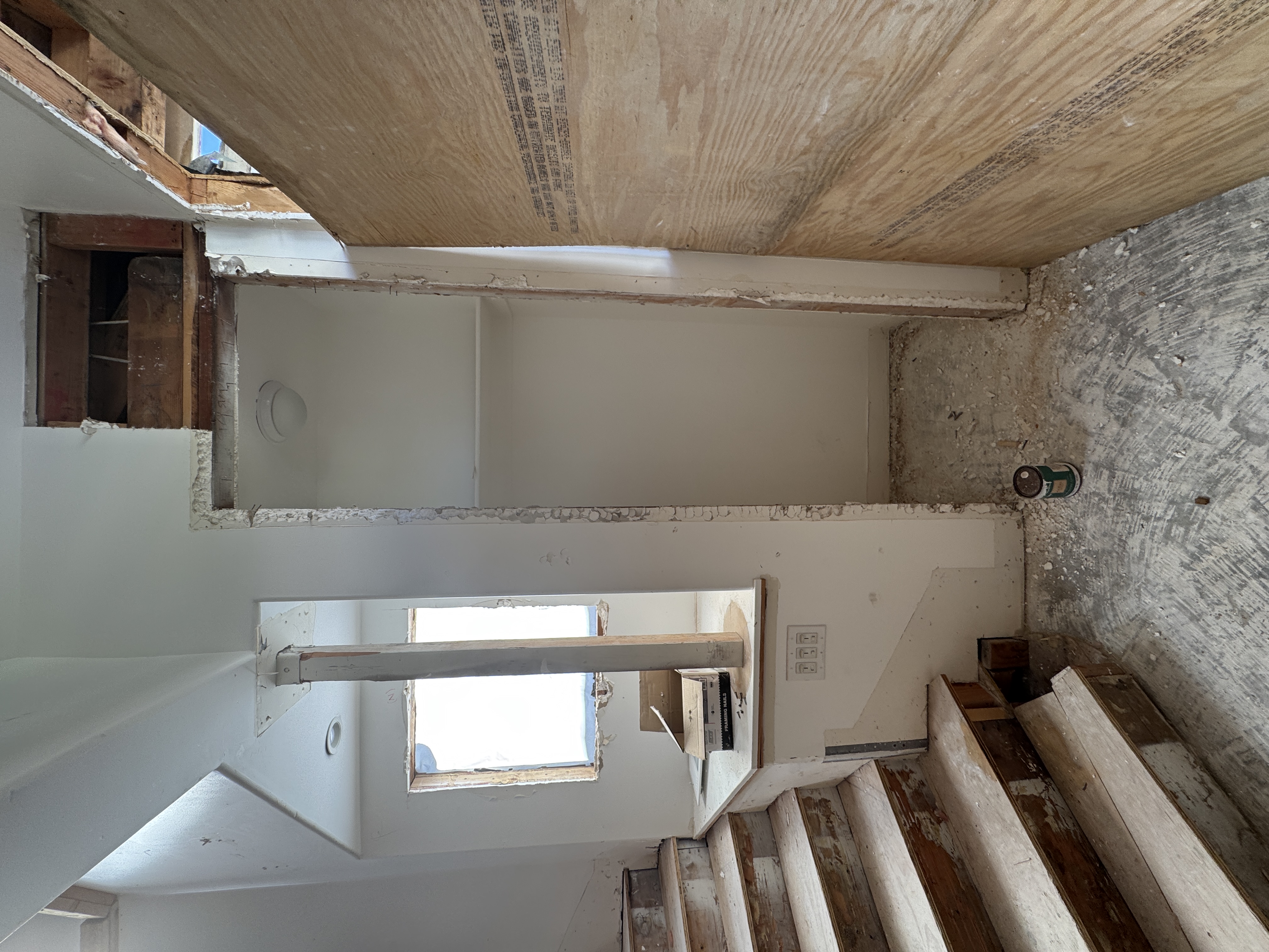 add finishes to the construction image similar to the reference image light oak wood warm interiors cabinetry on the right side to hang clothes