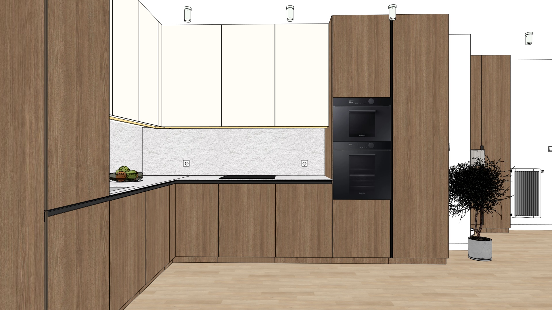 illumination in the interior as on a cloudy day transform the input interior design photo into a hyper realistic architectural visualization of a contemporary modern interior preserve exact geometry layout proportions and material intent from the original design lighting create soft overcast daylight atmosphere similar to a cloudy rainy day without visible rain with diffused natural light entering through windows add warm artificial lighting from all lamps accent led backlighting behind the tv subtle ambient glow to enhance depth and spatial layering maintain balanced contrast no harsh shadows no overexposure materials textures enhance material realism micro details surface imperfections soft reflections accurate roughness physically correct light response emphasize textures wood grain fabric weave stone concrete metal and matte finishes high micro contrast and tactile depth rendering style ultra photorealistic architectural visualization cinematic quality natural color grading neutral tones soft highlights realistic global illumination physically based rendering high dynamic range premium interior photography style camera composition wide angle architectural lens natural perspective eye level viewpoint deep focus sharp details across the frame natural framing no distortion atmosphere calm elegant contemporary premium residential mood clean minimal refined without visual noise output 8k resolution ultra detailed noise free crisp edges professional architectural rendering quality negative prompts no rain droplets no lens flares no fog no haze no bloom no motion blur no cartoon no stylization no oversharpening no artificial glow no unrealistic reflections no distortion no clutter