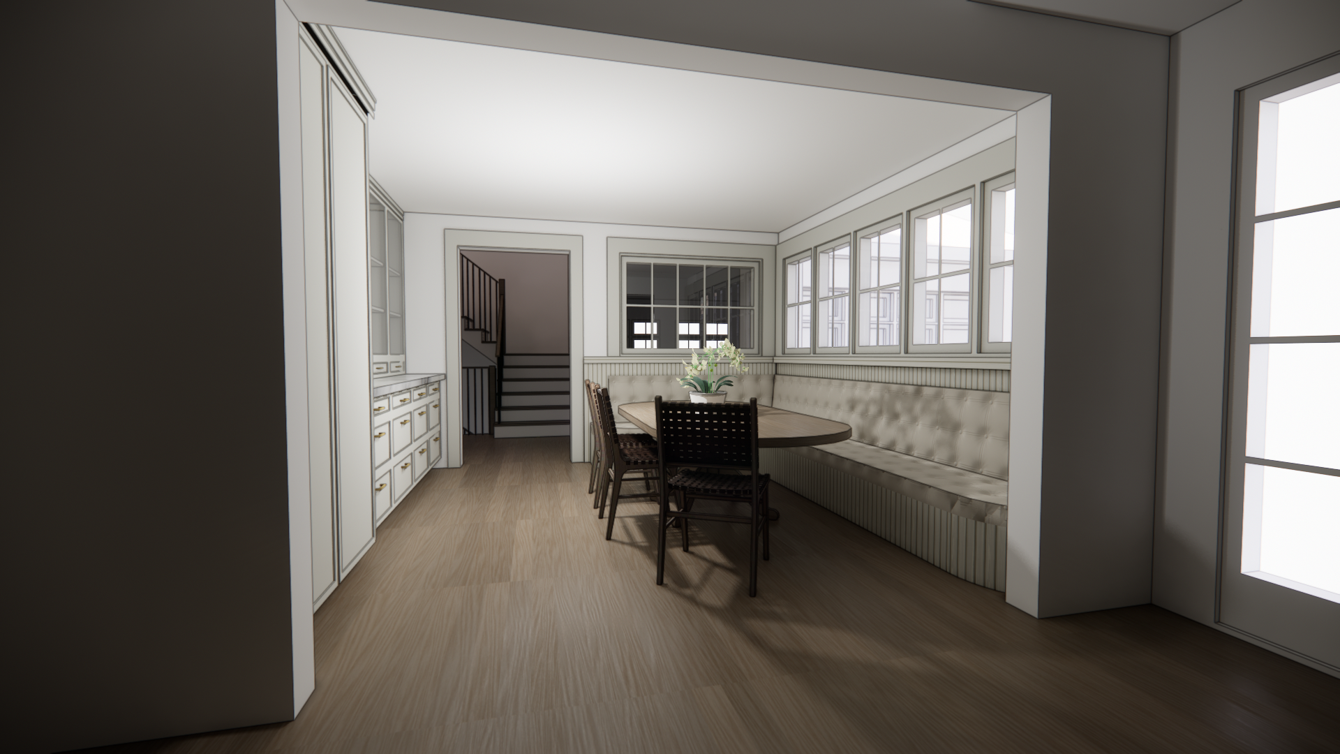 interior architectural rendering morning light