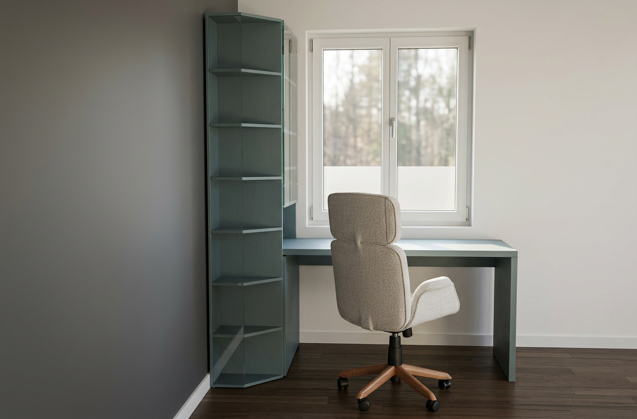 alvar aalto exterior shot render a modern single story house with beige stucco walls and a dark brown gable roof accented by a central entrance with stone detailing large glass doors and windows bring an open feel to the design the surrounding landscape features lush green grass and a smooth light gray concrete pathway set in a serene atmosphere the sky above is a clear soft blue creating a tranquil inviting environment architecture