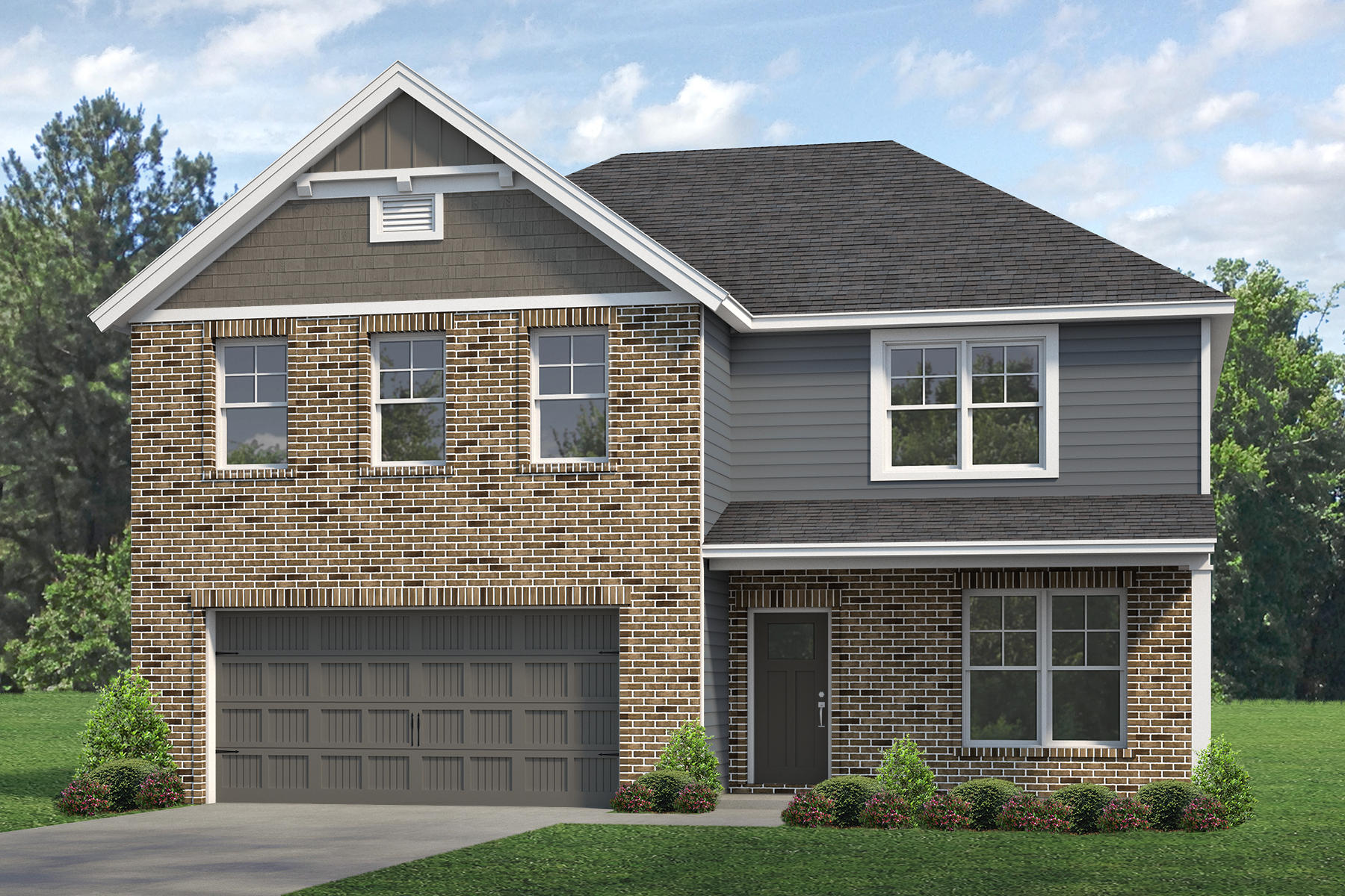 make this rendering more interesting but do not change the colors or any structural aspects of the home make the it morning time