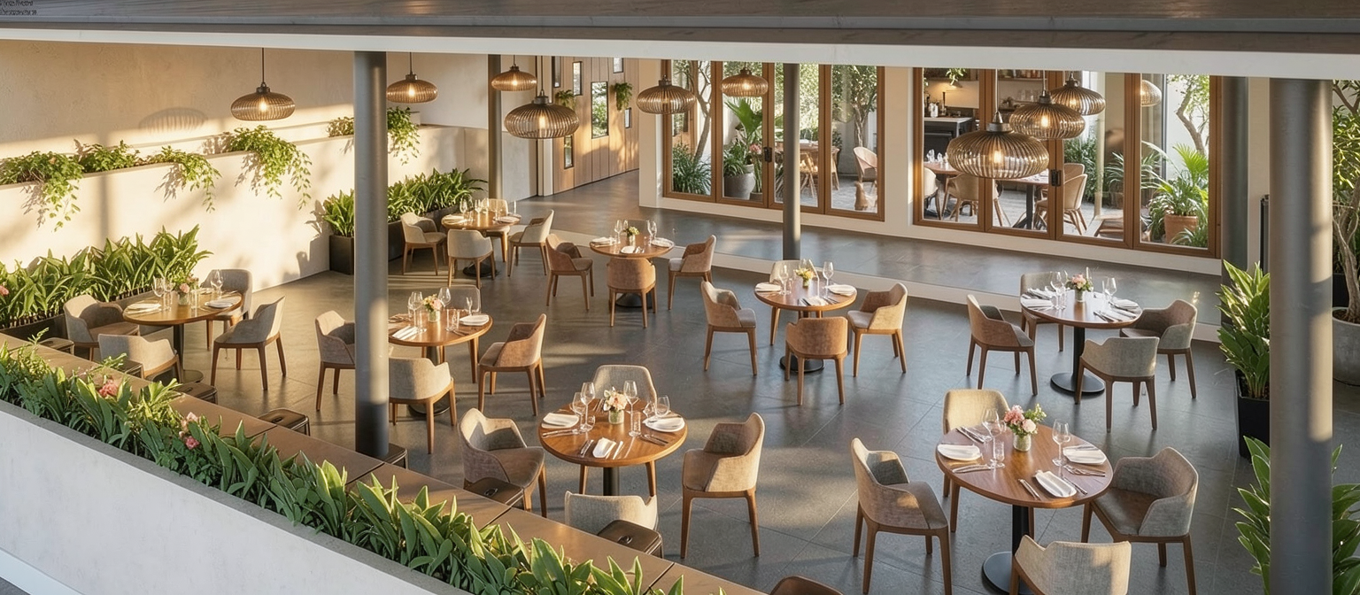 use the provided enscape render as the exact spatial and compositional reference do not change room geometry window placement or camera angle keep and refine materials and landscape