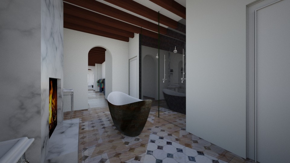 bathroom design 12 0 width by 15 0 length exposed wood beam celing with white drywall in between beams track lights on drywall add molding over the doors to make them blend into the walls