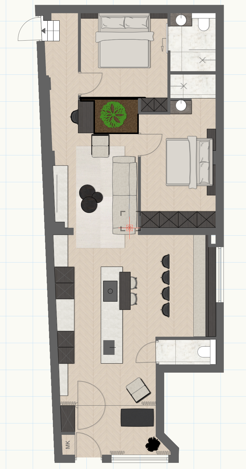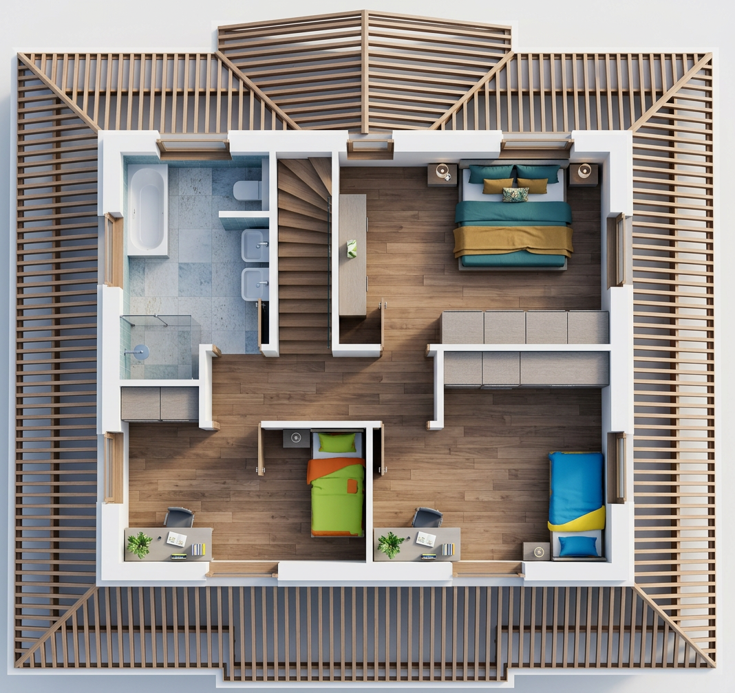 make from this plan a render in a corner in 3d render in the same colours as the plan