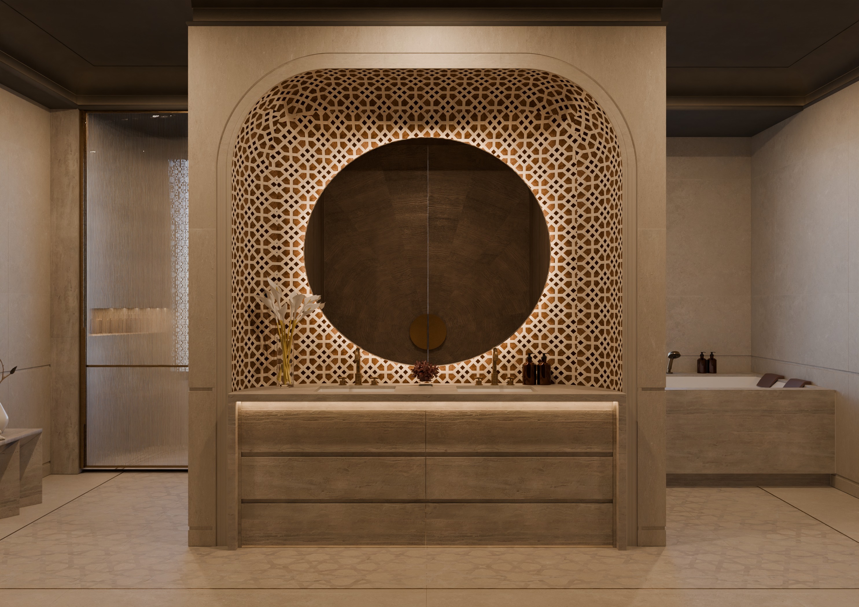 blue mosaic on the walls 1 meter heigh from the floor