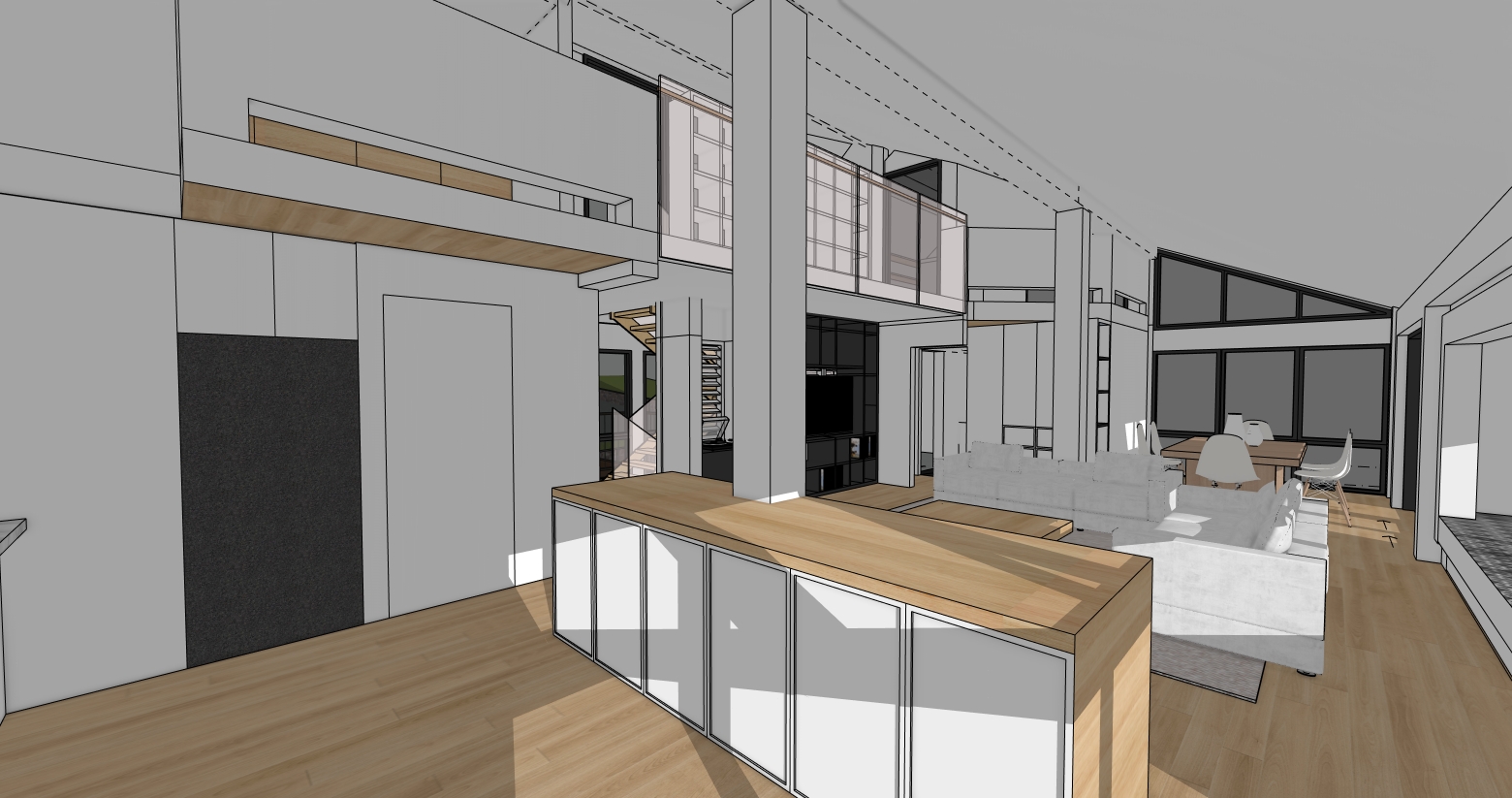 create a photorealistic architectural render of this image it s located in gowrie act show canberran suburbia outside windows walls and ceilings are stucco white kitchen is mdf white