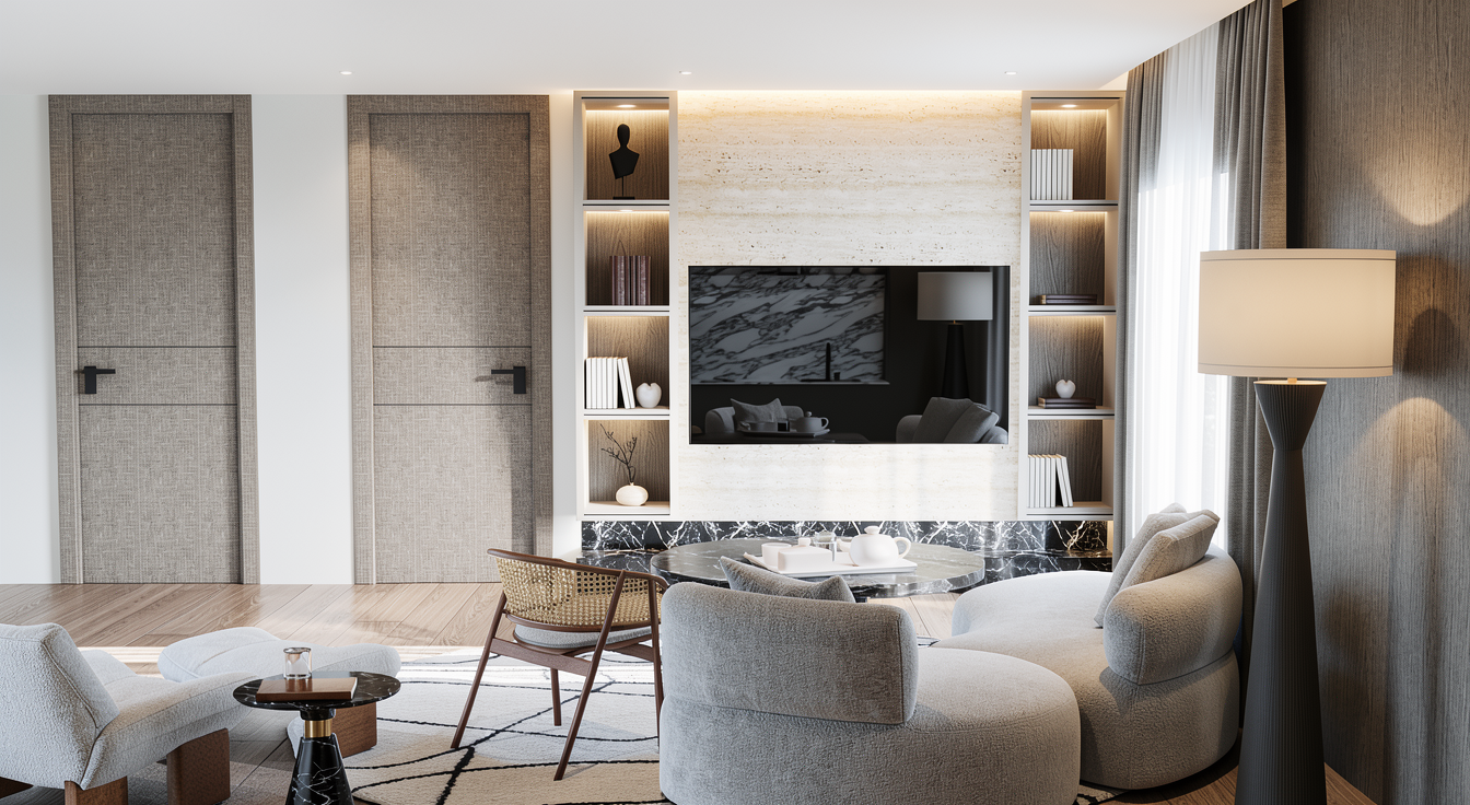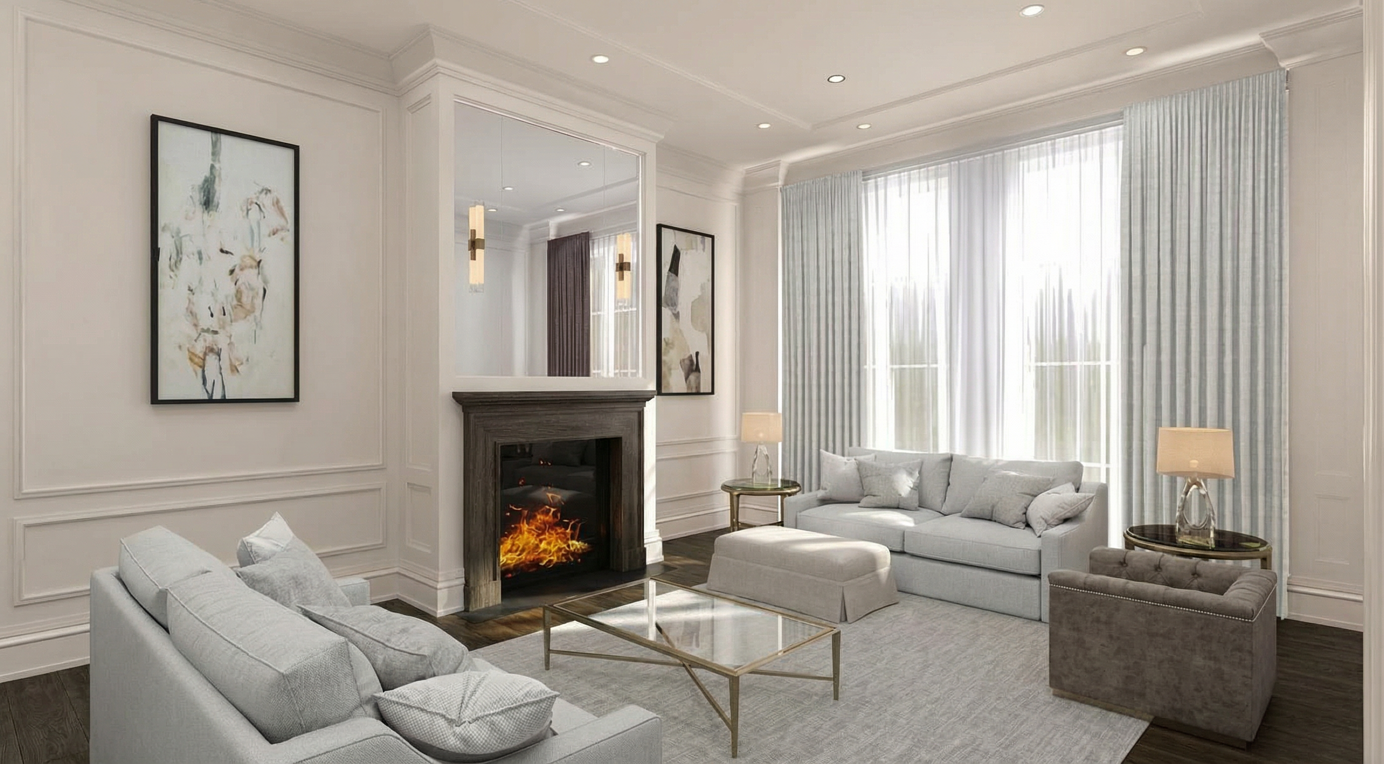 light floor trees outside add simple small round recessed lights in the white ceiling