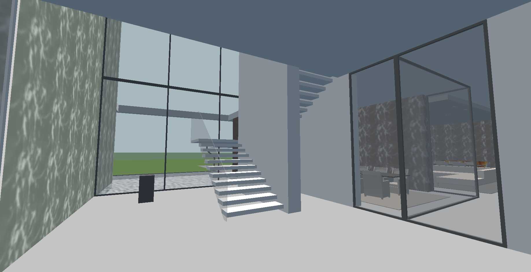 da questa immagine creare una hall realistica in cui il pavimento in marmo di calacatta lucido i muri a destra in marmo di calacatta lucido i muri a sinistra in marmo verde venato lucido serramenti bronzati nella portafinestra a destra fare intravedere una sala pranzo con tavolo in marmo chiaro e poltroncine dalla vetrata esterna far intravedere il giardino e lo specchio d acqua che arriva a filo del finestrone