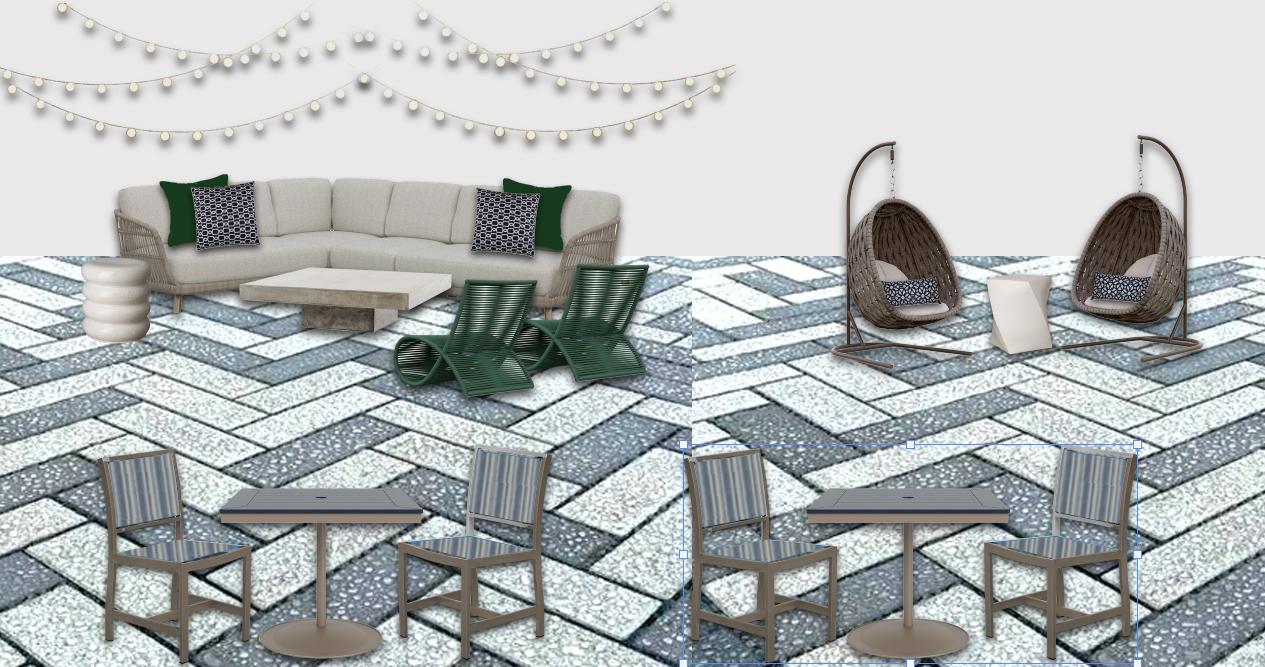 outdoor area community multifamily not residential herringbone pavers flooring less greenery dont add sa lot of trees