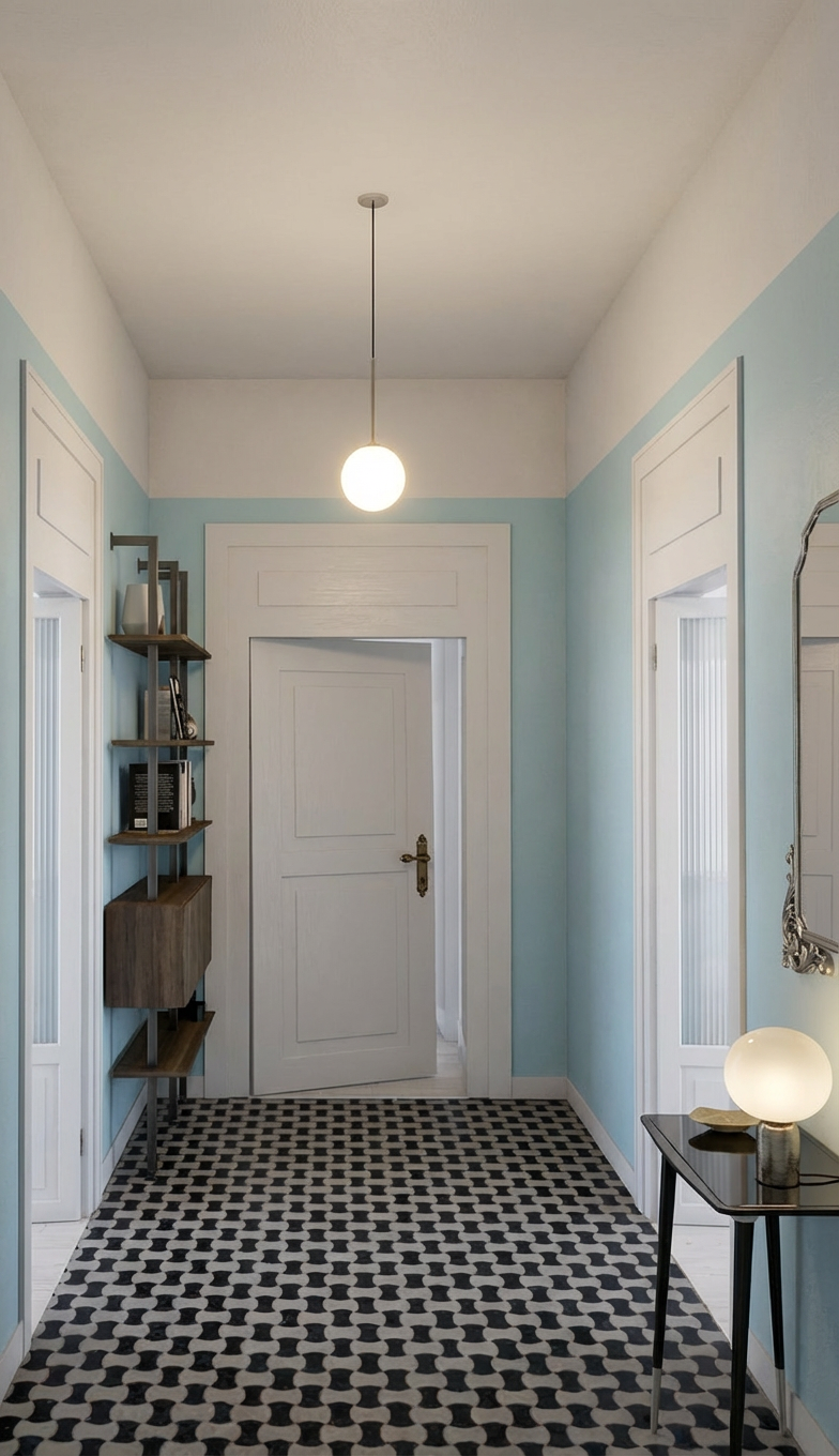 big bjarke ingels group exterior shot render a charming modern farmhouse with a welcoming atmosphere the house features smartly designed color and material blocking using light brick dark blue hardie exterior paneling and wood panel accents large windows with dark gray roof the front porch has detailed railings and a warm wooden door the surrounding landscape includes lush green grass vibrant flower beds in shades of lavender pink and yellow and tall green trees that frame the property the sky is a clear blue with a soft golden glow from a setting sun casting gentle shadows on the house overall the scene should feel serene and inviting architecture