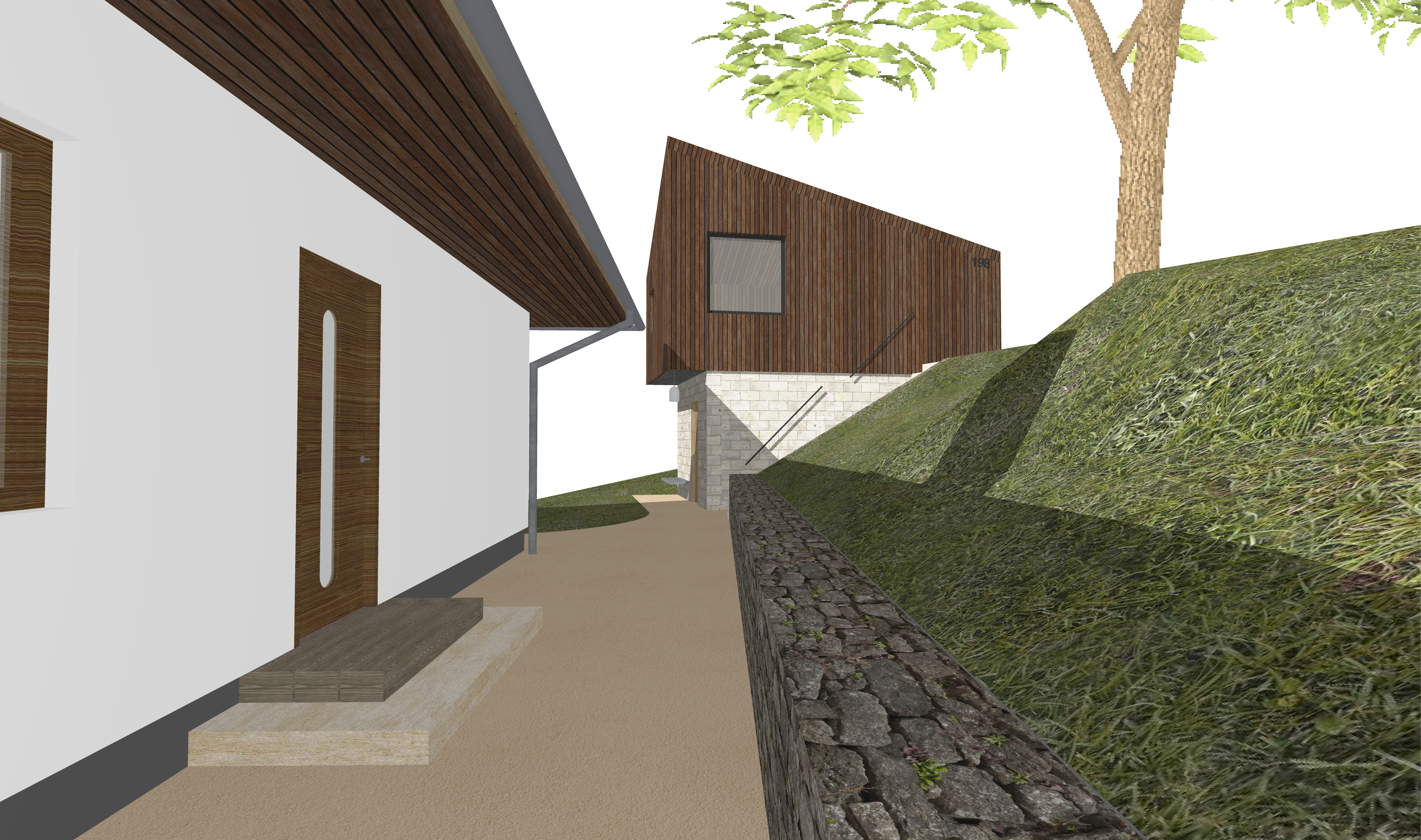 replace white background with real sky and replace grass texture with real grass architecture