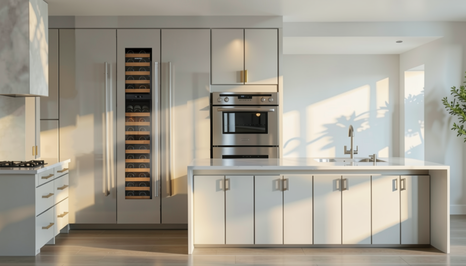 don t change layout color or material just make this look like a photo realistic rendering make the cabinets the same exact color just make them look seamless transition make it looked not photoshopped
