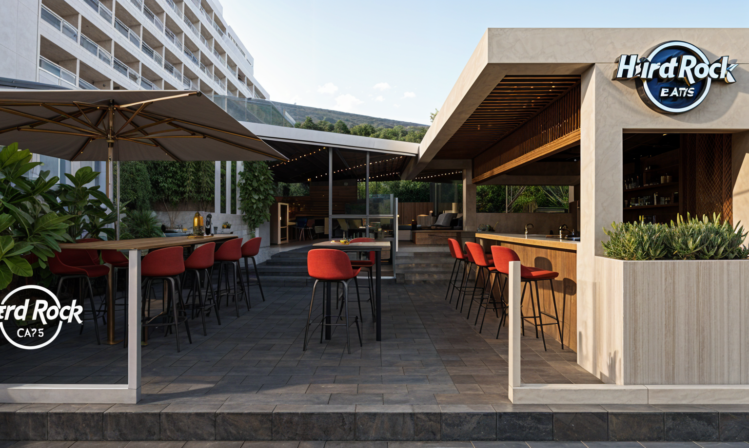 change only the color of umbrellas and furniture upholstery to blue change bar front finish to blue crazy tiles change bar stools to wood frame bar stool and upholstery seat