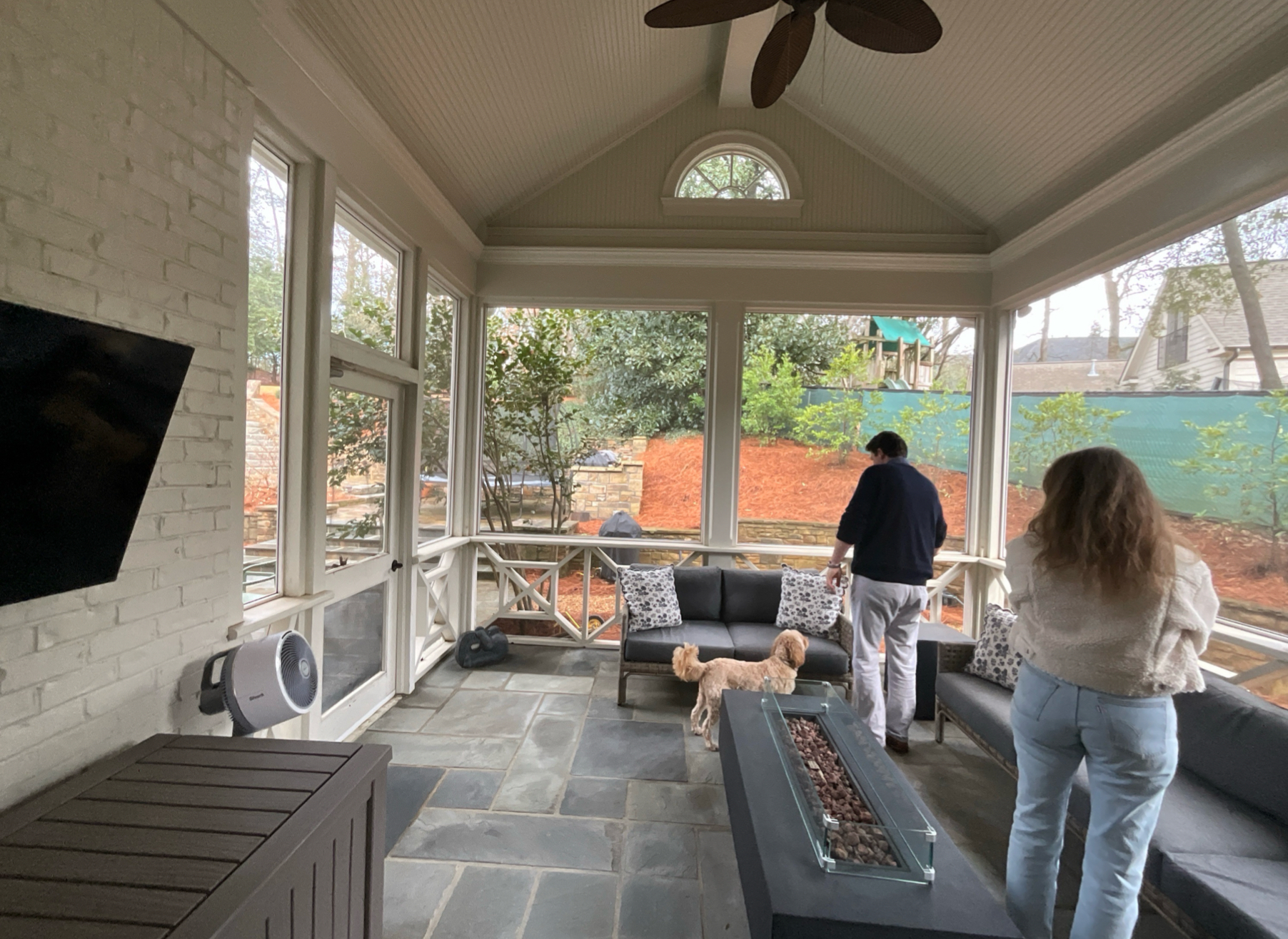 render to show marble checkerboard flooring breakfast table in lieu of the furniture shown iron windows in place of screens