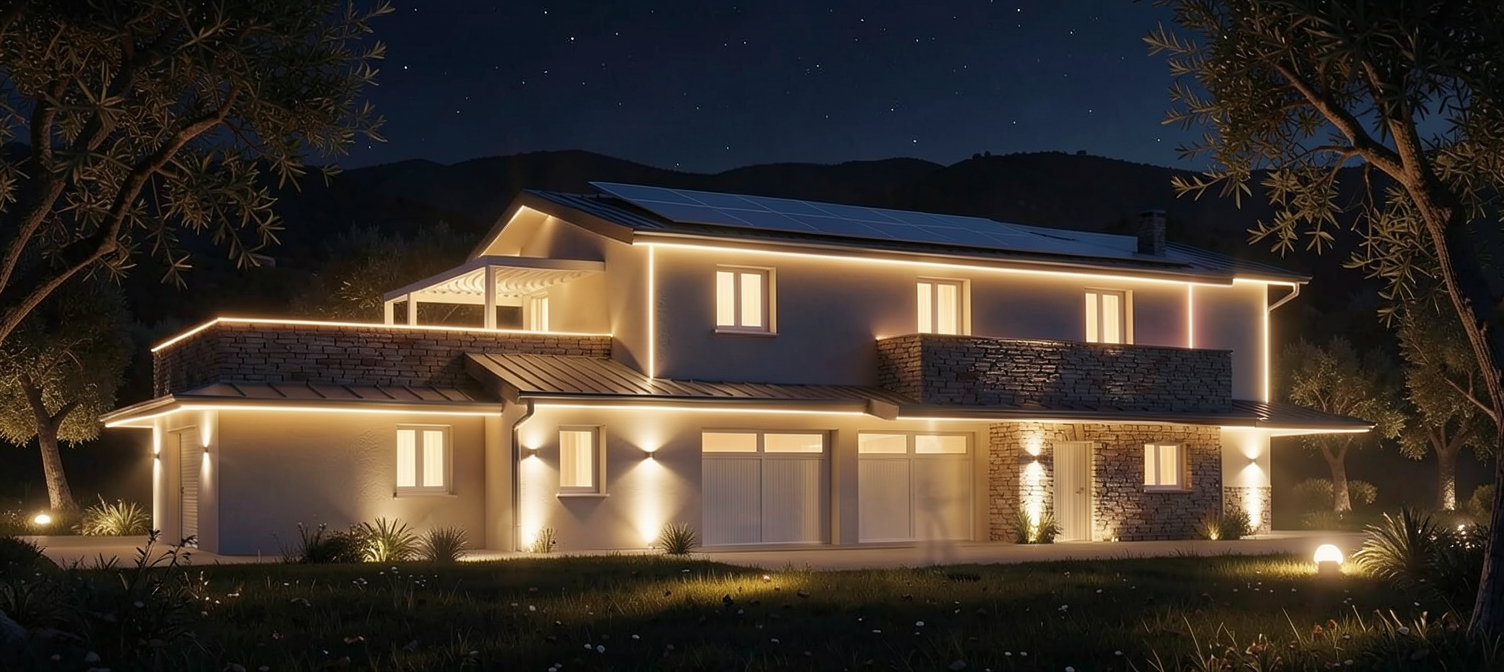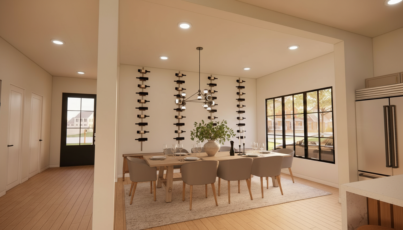 make this render realistic add sky and trees to background white external walls sound be a very light cream render with the timber feature walls being black timber battens with deep recess joints only in location shown in image