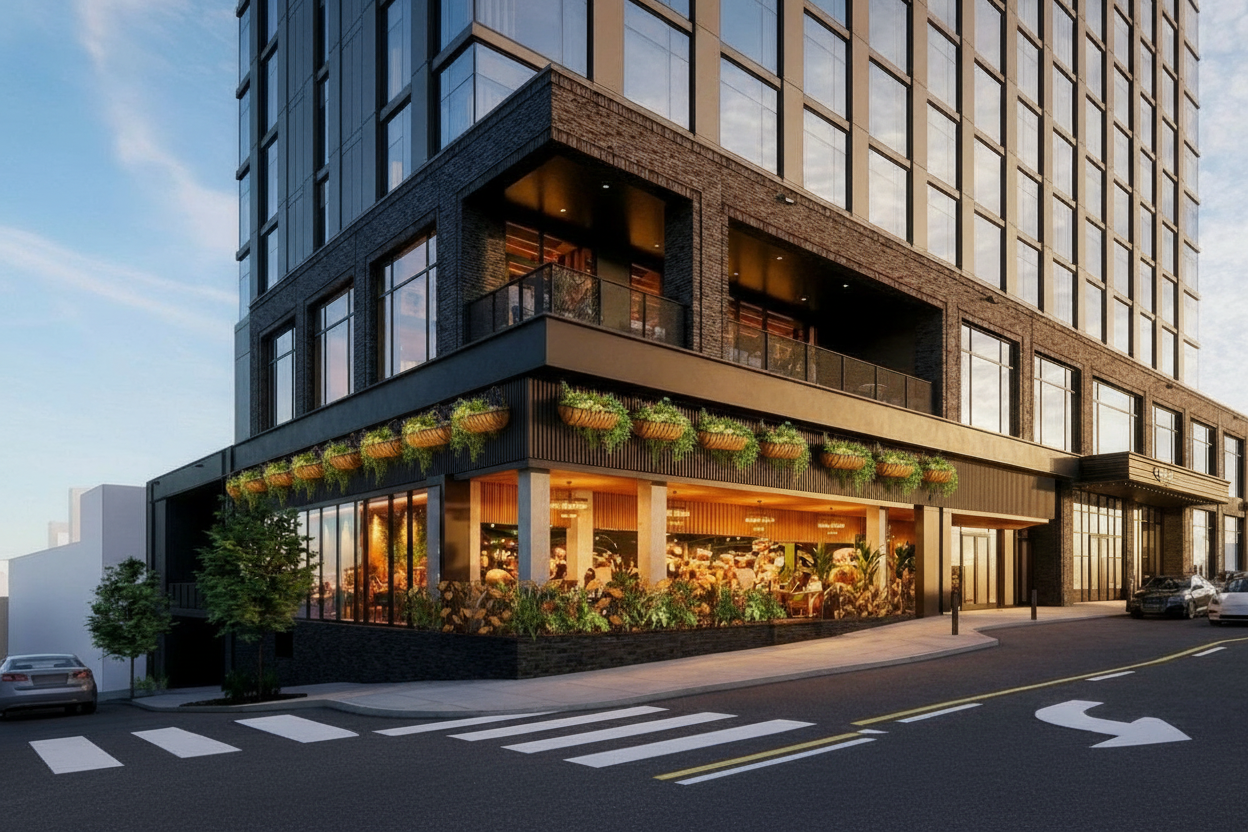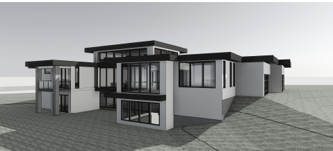 make this a photo realistic rending that is more california modern style with lots of whites and black contrast