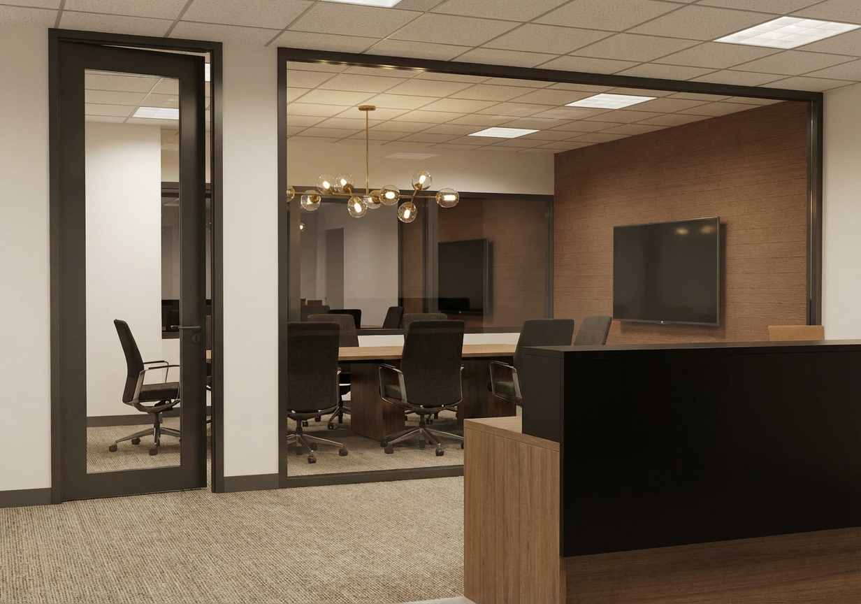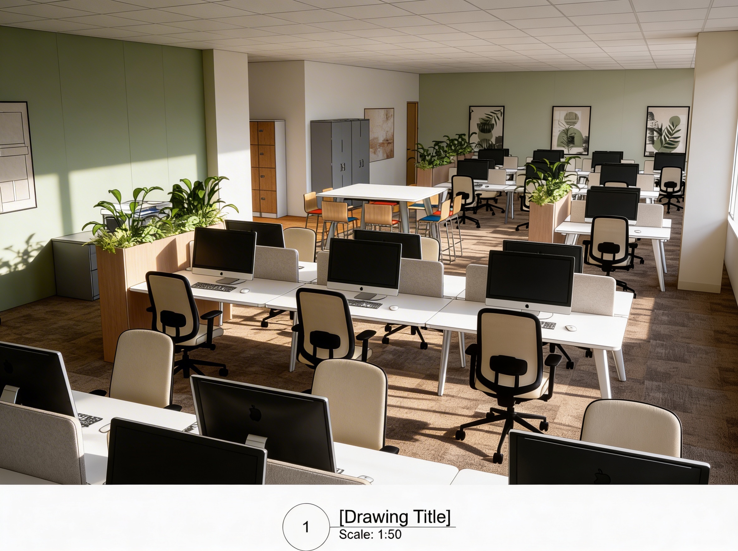render photo realistic keeping finishes and structure the same standard office grid ceiling