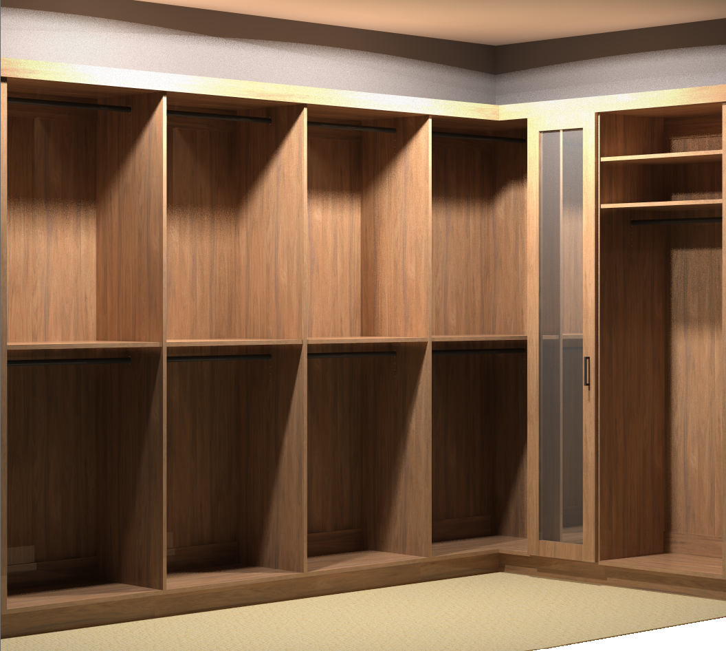 add leds to the top shelf of this closet add a black wallpaper to the back upper wall add clothes to the closet rods