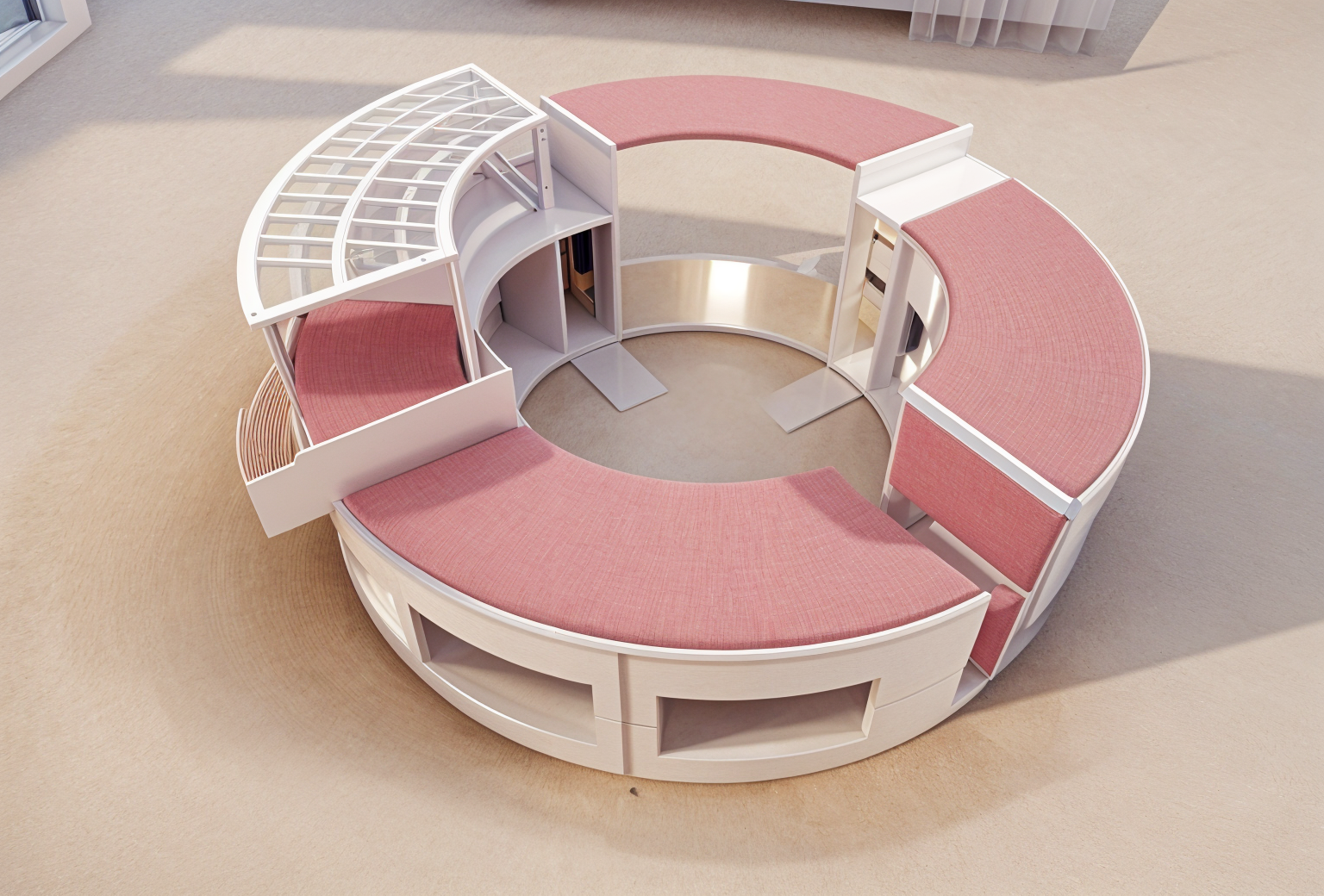 keep the exact same viewpoint composition and original colors of the reference image do not add or remove any elements only apply simplified non realistic textures while preserving the overall cartoon and collage style replace all very dark brown elements including the second floor bookshelves and the floor with a dark wood texture all visible walls and ceilings should receive a light wood texture showing the raw wooden structure the central staircase must be textured with multiple tones of wood for the exterior areas apply a grass texture to all green elements and turn the blue area into a bright sunny sky with soft clouds increase the definition of the small car while keeping it in the same cartoon collage style the grey wall on the left should become a grey stone wall do not change lighting proportions perspective or layout only add the described textures while maintaining a stylized non realistic cut out look