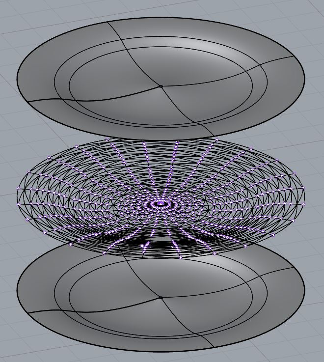 make it a realistic visualization of exploded view of a translucent plate where this netlike wireframe as reinforcement