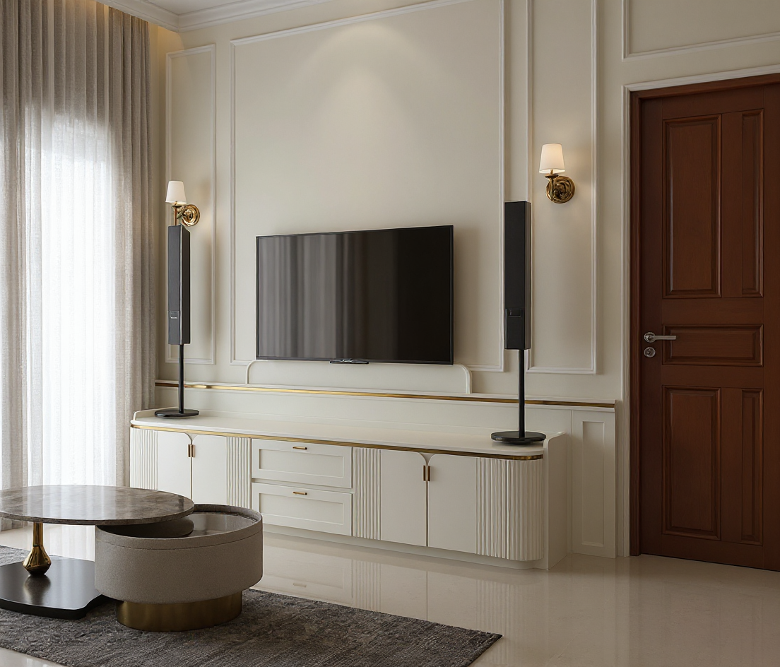 render mountain background realitic and the building has a threshold walk throug in the middle and some of the building