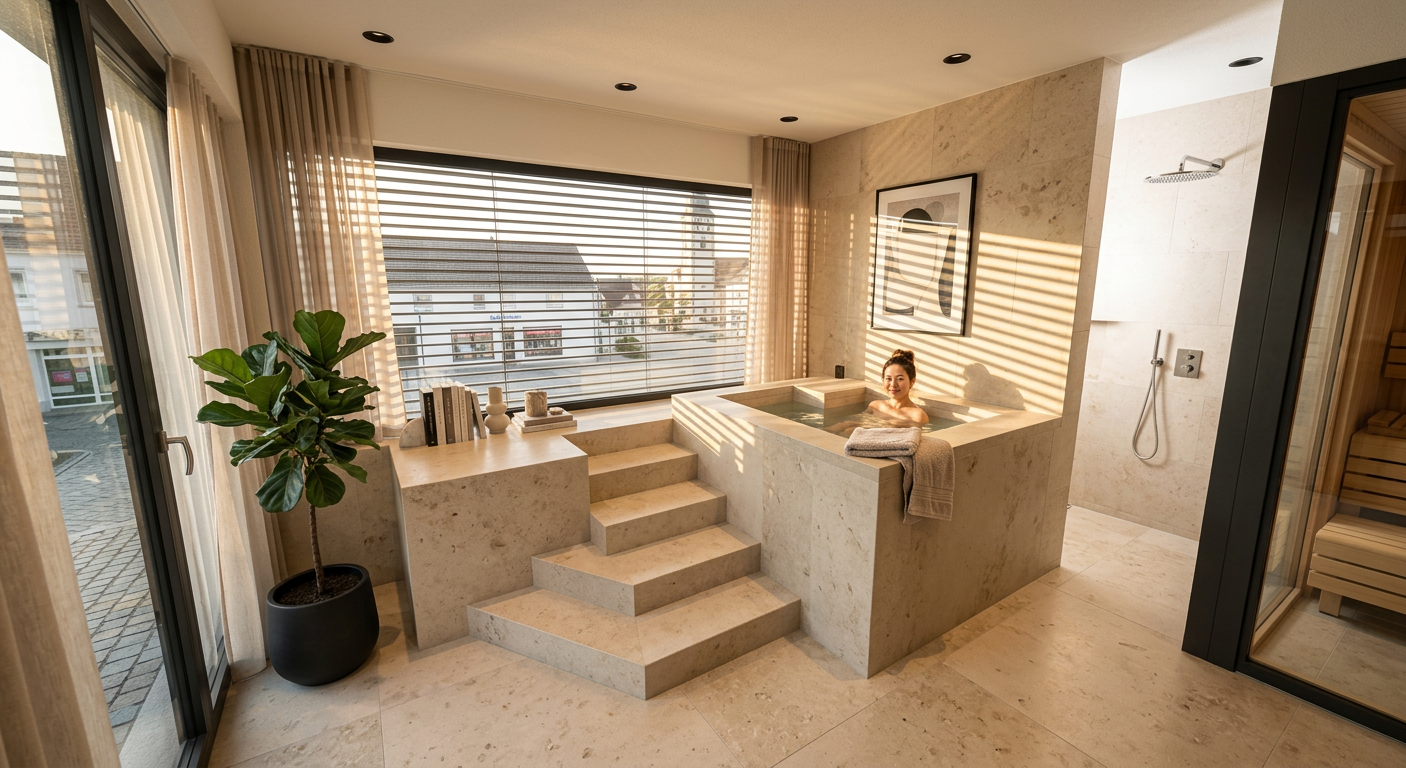 reate ultra realistic images without changing any structure shape design or materials do not resize jpegs beige wood vinyl flooring plain off white walls beige wall panels add indirect light add outside view in the windows