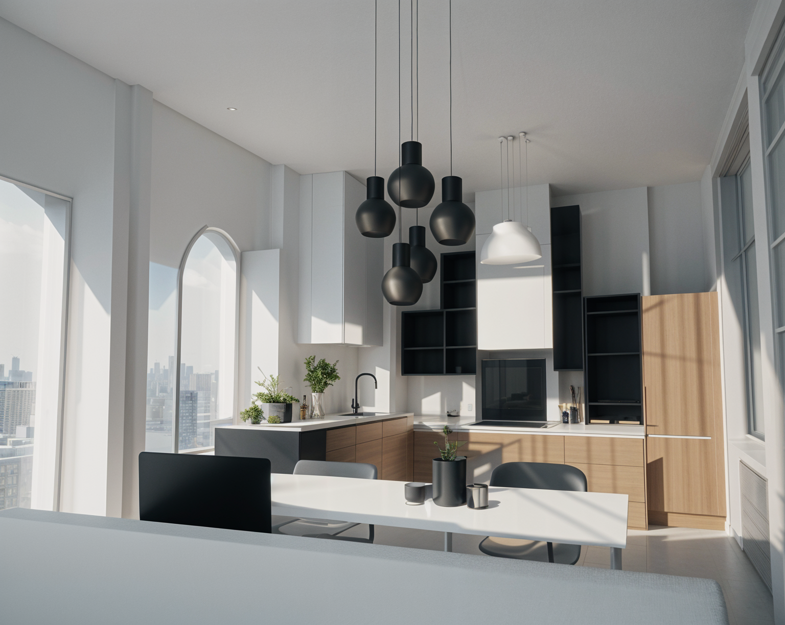 minimalism interior shot zielone szafki dolne czarna lod wka architecture