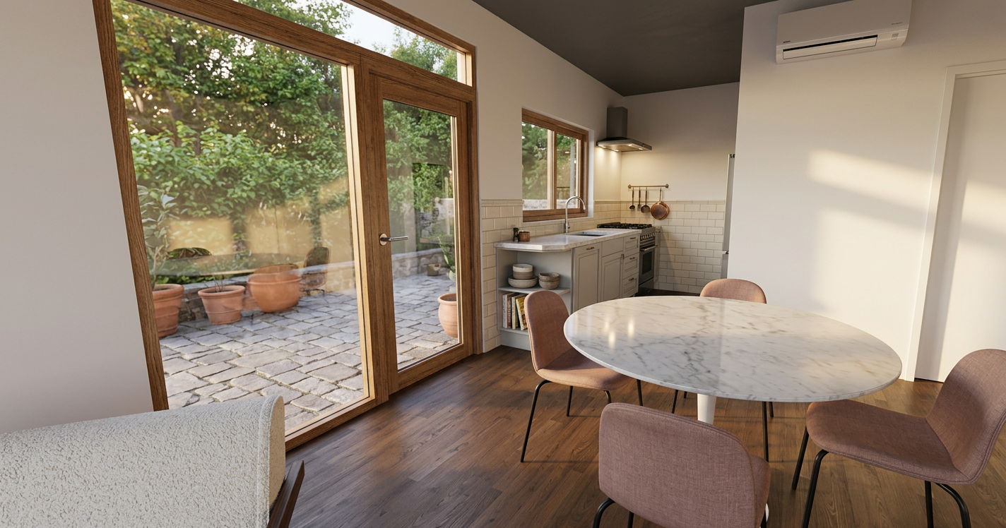 move the wooden boxes aligned nice and tidy next to each other repair the broken steps make them look new keep everything else as is