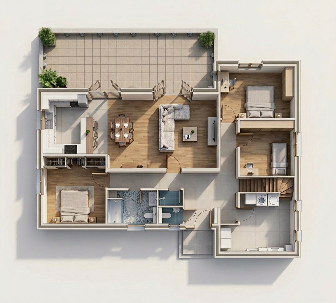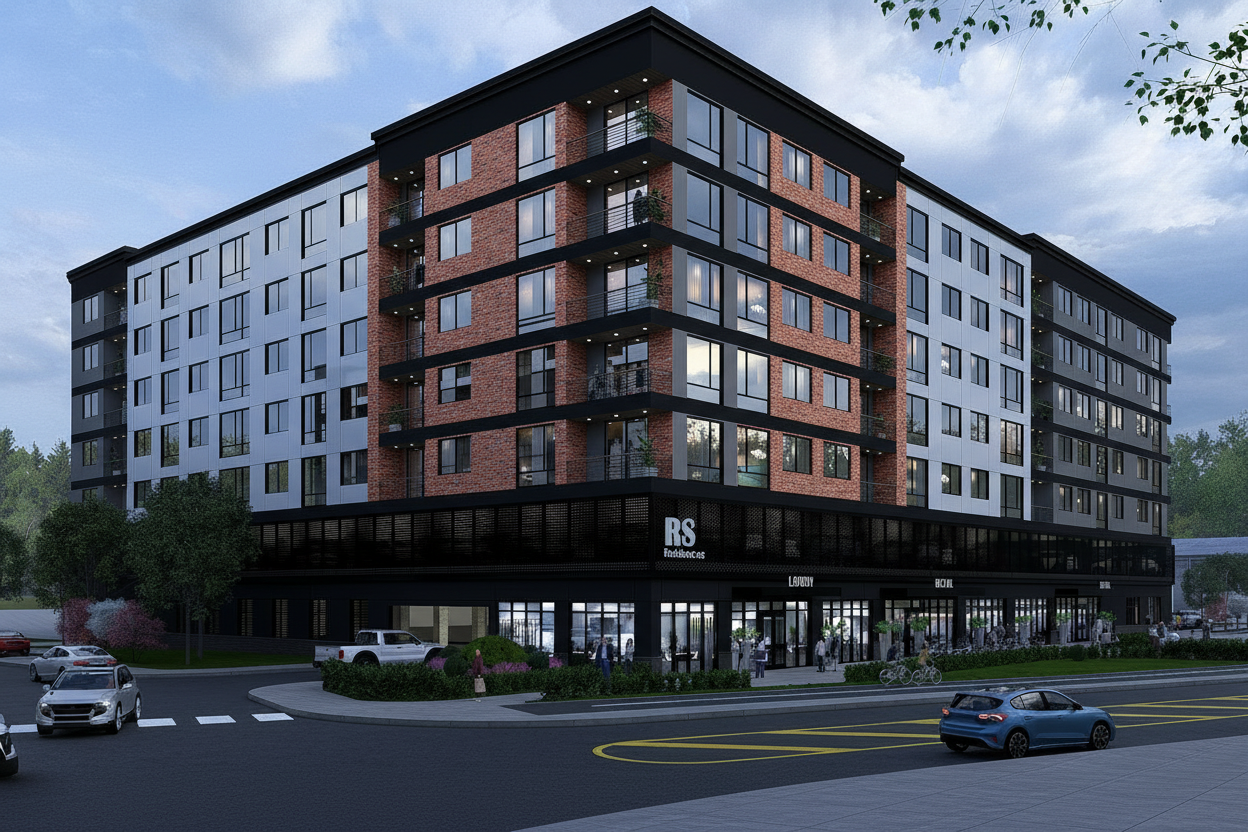 the attached image shows an existing building keep the architecture exactly the same including shape height windows balconies doors and all design elements only change the facade materials based on the reference images provided applying similar materials textures and color palette for a realistic and high quality result use red brick specifically on the ground floor first level while the rest of the facade follows the material language of the reference images do not modify the structure or architectural composition of the building