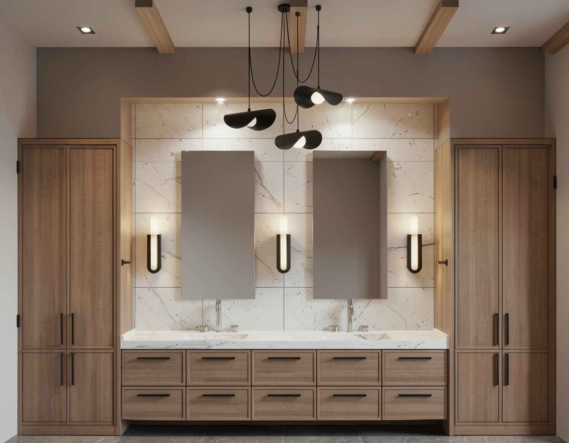 make the wood texture more realistic make the down part of the kitchen island concrete and without hidden light add hidden lights at the wine cabinet keep the hidden lights at the kitchen
