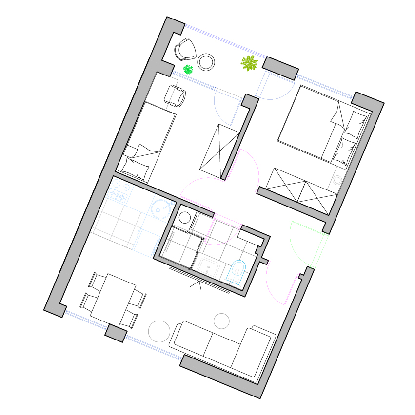 convert this floor plan into a realistic isometric 3d view of a full house show the space from an elevated angle with furniture walls and details visible convert this floor plan into a realistic isometric 3d view of a full house show the space from an elevated angle with furniture walls and details visible convert this floor plan into a realistic isometric 3d view of a full house show the space from an elevated angle with furniture walls and details visible convert this floor plan into a realistic isometric 3d view of a full house show the space from an elevated angle with furniture walls and details visible convert this floor plan into a realistic isometric 3d view of a full house show the space from an elevated angle with furniture walls and details visible convert this floor plan into a realistic isometric 3d view of a full house show the space from an elevated angle with furniture walls and details visible modern scandi interior floor plan view use the same furniture as shows on the plan do not change the orientation of the floorplan use the same furniture as shows on the plan do not change the orientation of the floorplan flooring is light oak parquet entrance door is dark brown i marked you in sketch as greem color interior doors are white i marked you in sketch as magenta color exterior doors and windows are black tiles in bathroom is white marble in bathroom you have glass washing cabin toilet sink wahing machine and cabinet tiles in kitchen is silver concrete texture and kitchen elements are in wood texture put some decoration in interior furniture need to be in silver grey and beige tones use the same furniture as shows on the plan do not change the orientation of the floorplan use the same furniture as shows on the plan do not change the orientation of the floorplan