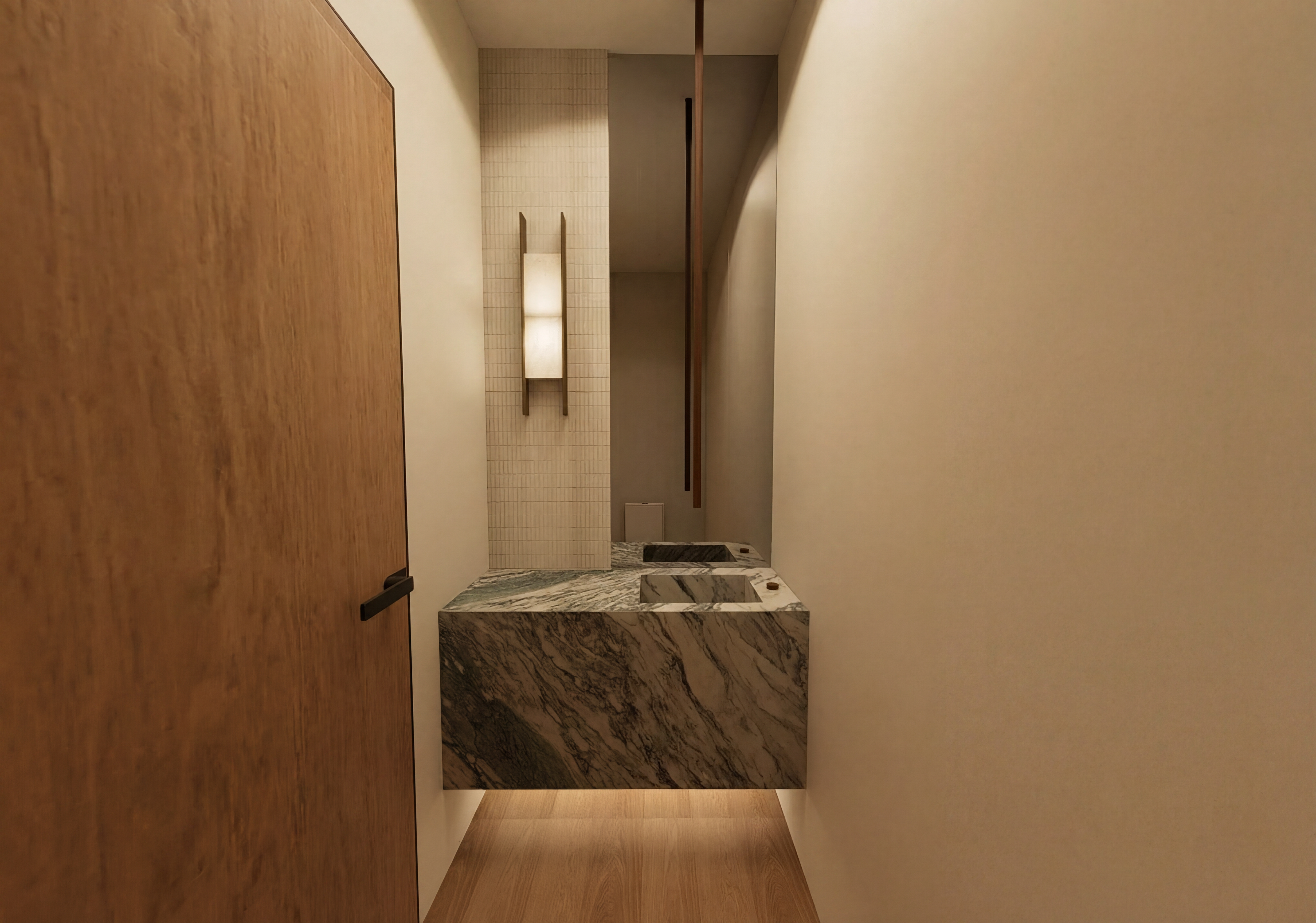 copy recessed wall panel and add around to other doorway opening maintain same colors textures furniture