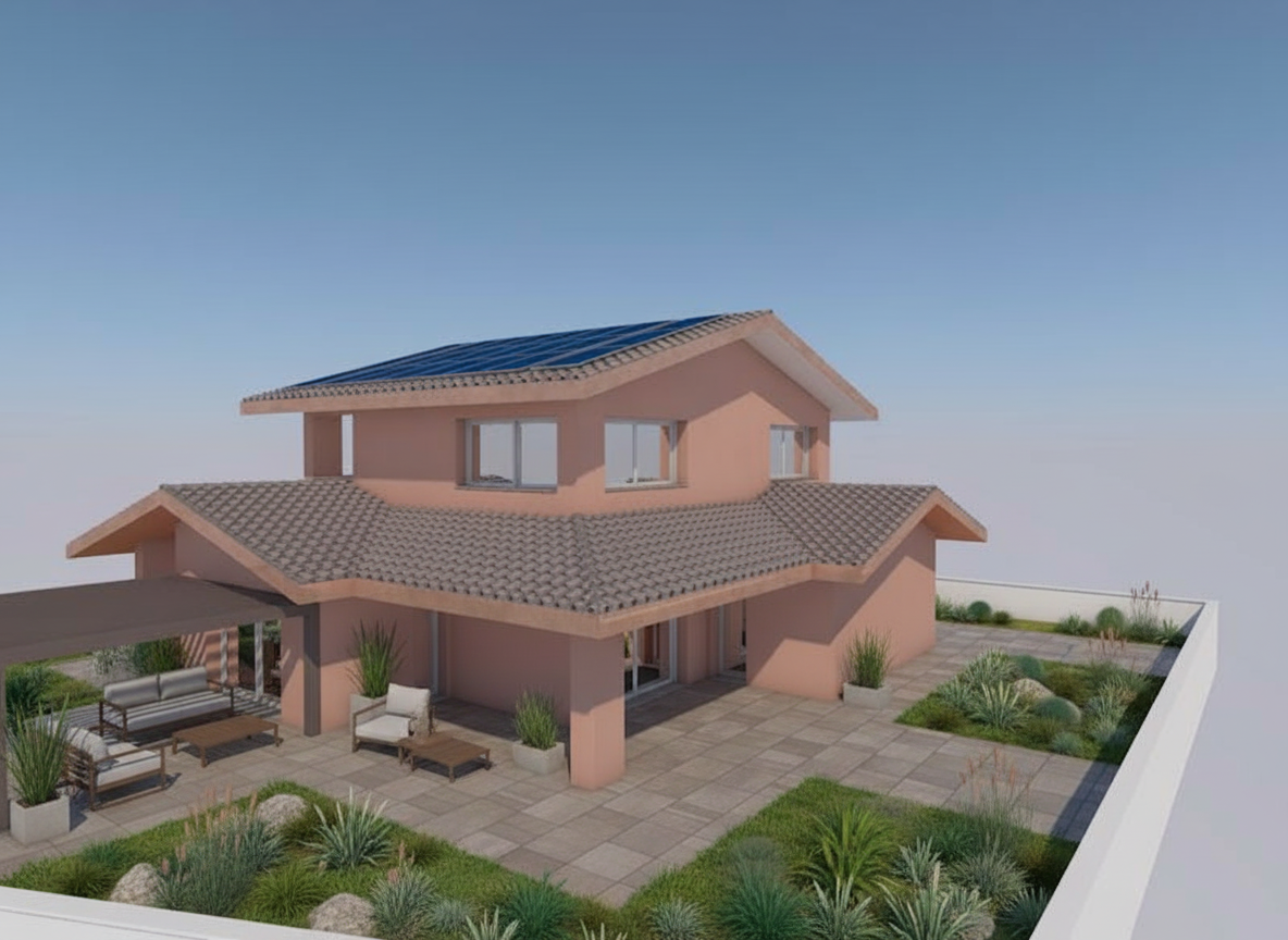 convert this floor plan into a realistic isometric 3d view of a full house show the space from an elevated angle with furniture walls and details visible keep everything the same and remove the pavers and furniture in the forefront of the photo and keep the smaller narrow front porch only use the same furniture as shows on the plan do not change the orientation of the floorplan