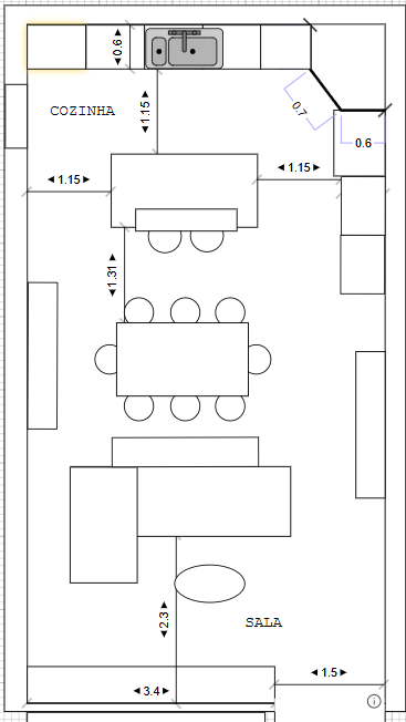 convert this floor plan into a realistic isometric 3d view of a full house show the space from an elevated angle with furniture walls and details visible dark beige wooden pannels for the floors and white walls dark wood cabinets for the kitchen and white stone some lamps spread around the space use the same furniture as shows on the plan do not change the orientation of the floorplan