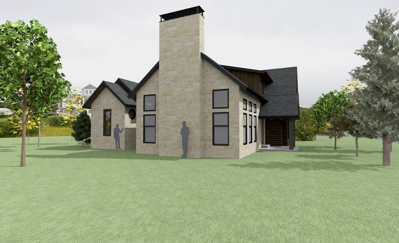 make this photorealistic do not change any of the design details add landscaping with walk ways to the front and side of the house